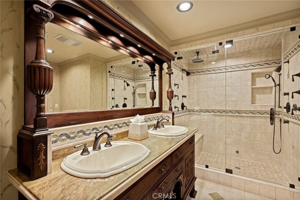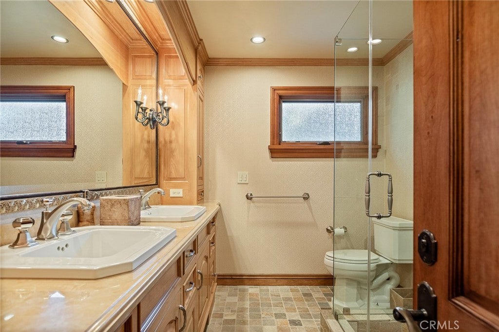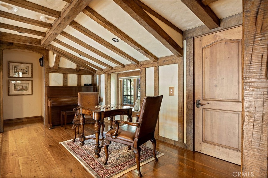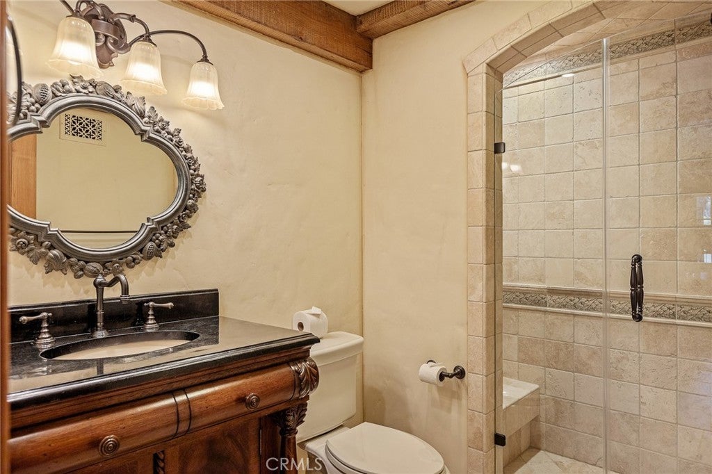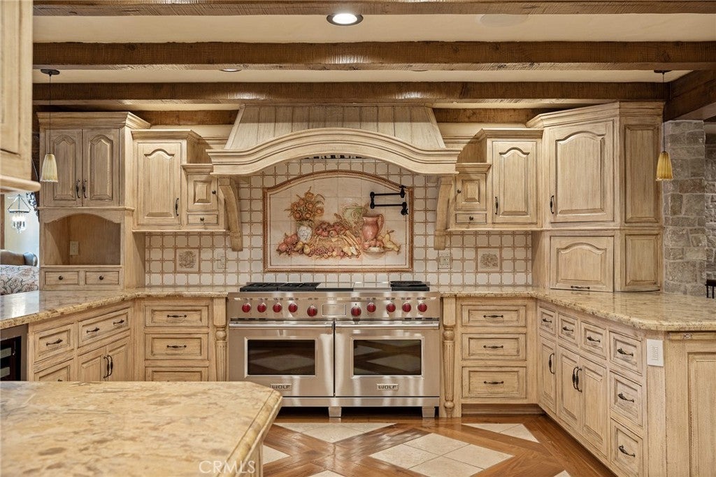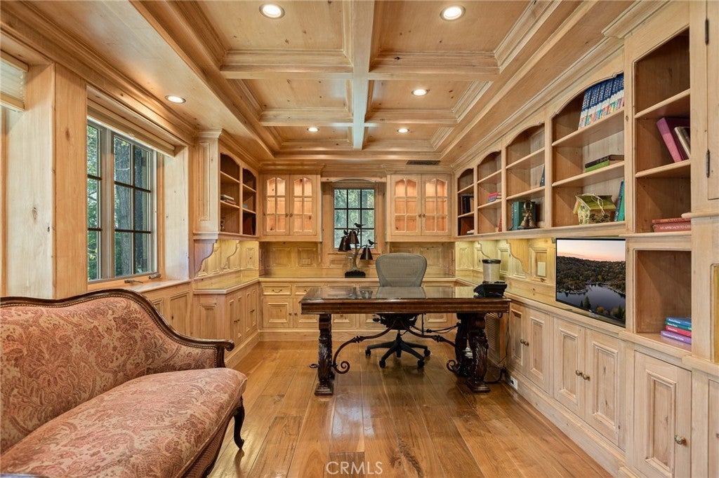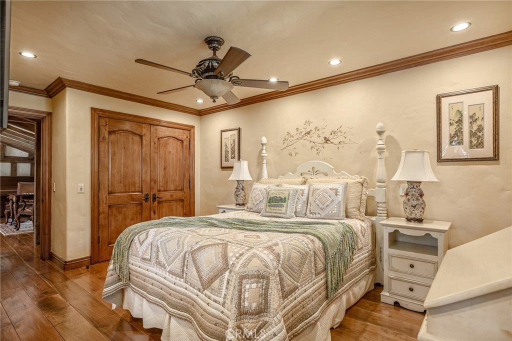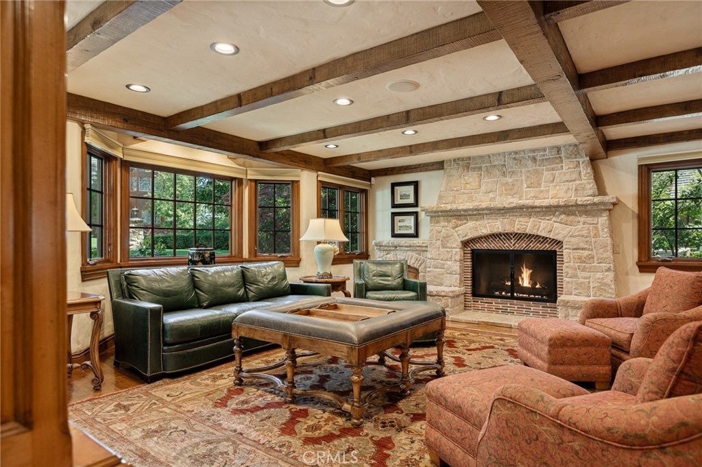 Set directly on the lake with two private boat docks, this fully reimagined English Tudor estate is one of the most distinctive and irreplaceable properties in Lake Arrowhead. Extensively redesigned inside and out by noted architect David Abbott, with a full-scale construction remodel completed between 2004–2006, the home is a true expression of old-world European craftsmanship—not a reinterpretation, but a fully realized architectural statement brought to life with enduring quality and intention. Every detail has been thoughtfully executed, blending timeless design with modern comfort. Positioned behind the gated entry of the prestigious Point Hamiltair community, with a dramatic stone approach and directly across from the Lake Arrowhead Village, the home unfolds with a true sense of arrival—reminiscent of a Cotswolds manor. Inside, exposed timber beams, hand-chiseled woodwork, custom wrought iron, and layered artisan finishes create a warm, richly detailed interior. The residence has been extensively renovated and upgraded throughout. Custom cabinetry, handmade doors, and one-of-a-kind custom woodwork crafted on-site reflect a level of care and craftsmanship rarely seen. Fireplaces feature hand-painted tile by Nancy Grace, complemented by hand-carved mantels that anchor each living space. The primary suite is designed as a private retreat, featuring a statement chandelier, hand-painted mosaic tile, steam shower, and spa-quality finishes. Architectural enhancements—including added dormers and custom built-ins—elevate both livability and design. Modern systems are fully integrated, including Control4 smart home automation, a Lutron lighting system, surround sound, a whole-house generator, and a commercial-grade elevator. Major infrastructure improvements such as a synthetic slate roof, comprehensive drainage system, and a recently rebuilt seawall by Kiwi Dock ensure long-term durability and peace of mind. Outdoor living is equally refined, with flagstone hardscape, artificial turf, custom railings, and seamless access to the lake and docks. This is a rare opportunity to own a true legacy estate—where premier lakefront positioning, architectural significance, and uncompromising craftsmanship converge in a way that is nearly impossible to replicate.