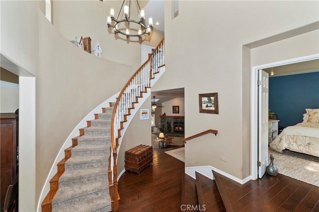 - Interior FeaturesBreakfast Bar, Built-in Features, Ceiling Fan(s), Cathedral Ceiling(s), Central Vacuum, Separate/Formal Dining Room, High Ceilings, Living Room Deck Attached, Multiple Staircases, Open Floorplan, Pantry, Quartz Counters, Recessed Lighting, Two Story Ceilings, Bedroom on Main Level, Primary Suite, Walk-In Pantry, Walk-In Closet(s)