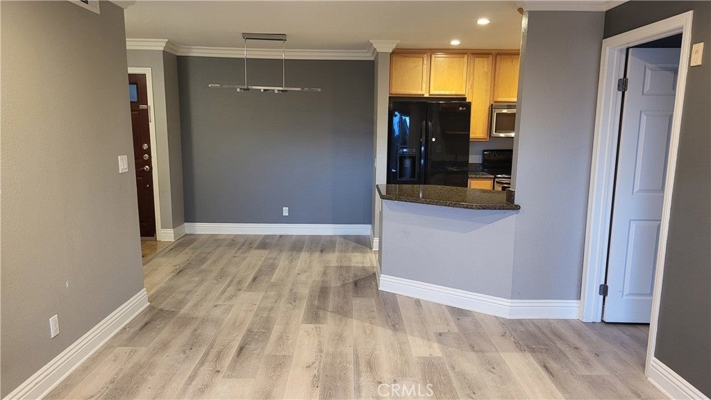 Welcome to this beautifully upgraded 2-bedroom, 2-bathroom suite condo located in the desirable Del Oro Serra community in West Corona. This home features two spacious bedrooms and two full bathrooms, along with a balcony offering a pleasant view. The interior boasts granite countertops in both the kitchen and bathrooms, elegant crown molding, upgraded bathrooms, and stylish wood laminate flooring throughout. For added convenience, the unit includes a refrigerator, washer, and dryer. Rent also covers water and trash services. Residents enjoy access to excellent community amenities, including a pool, spa, and fitness center. Ideally situated with easy access to the 91 Freeway, this home is perfect for Orange County commuters. Available for move-in starting May 3rd.