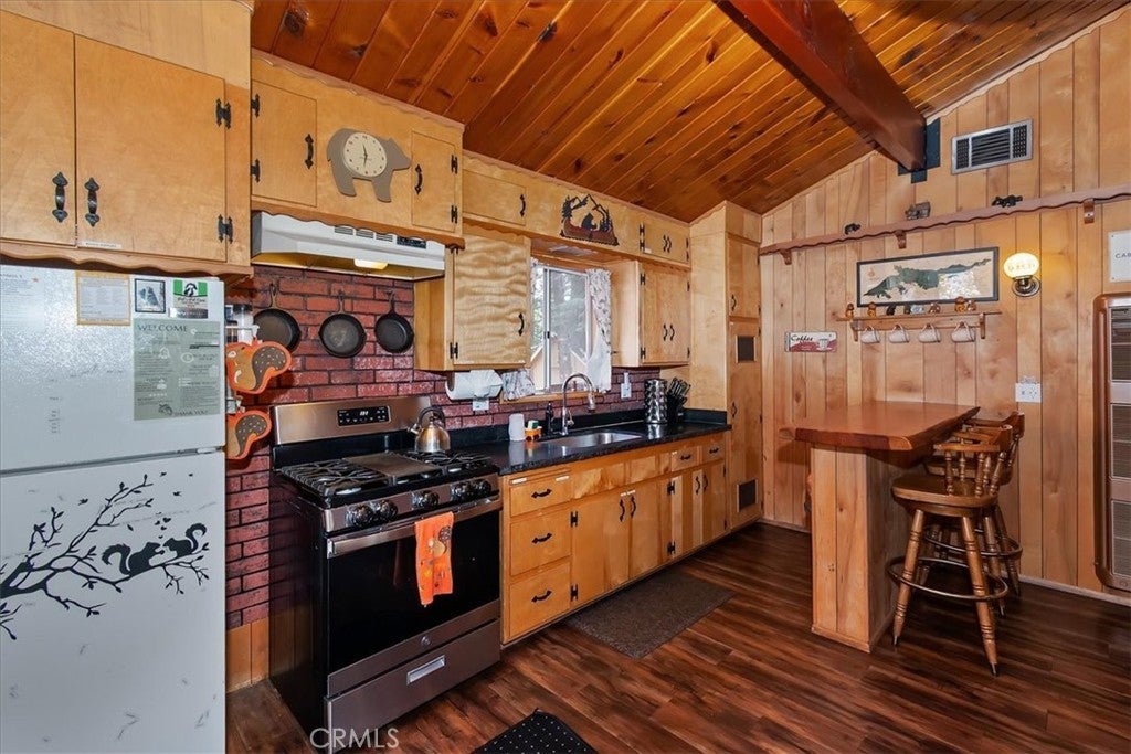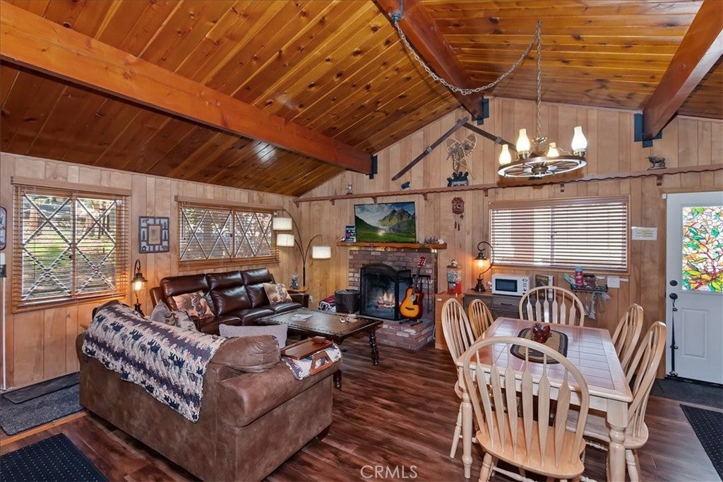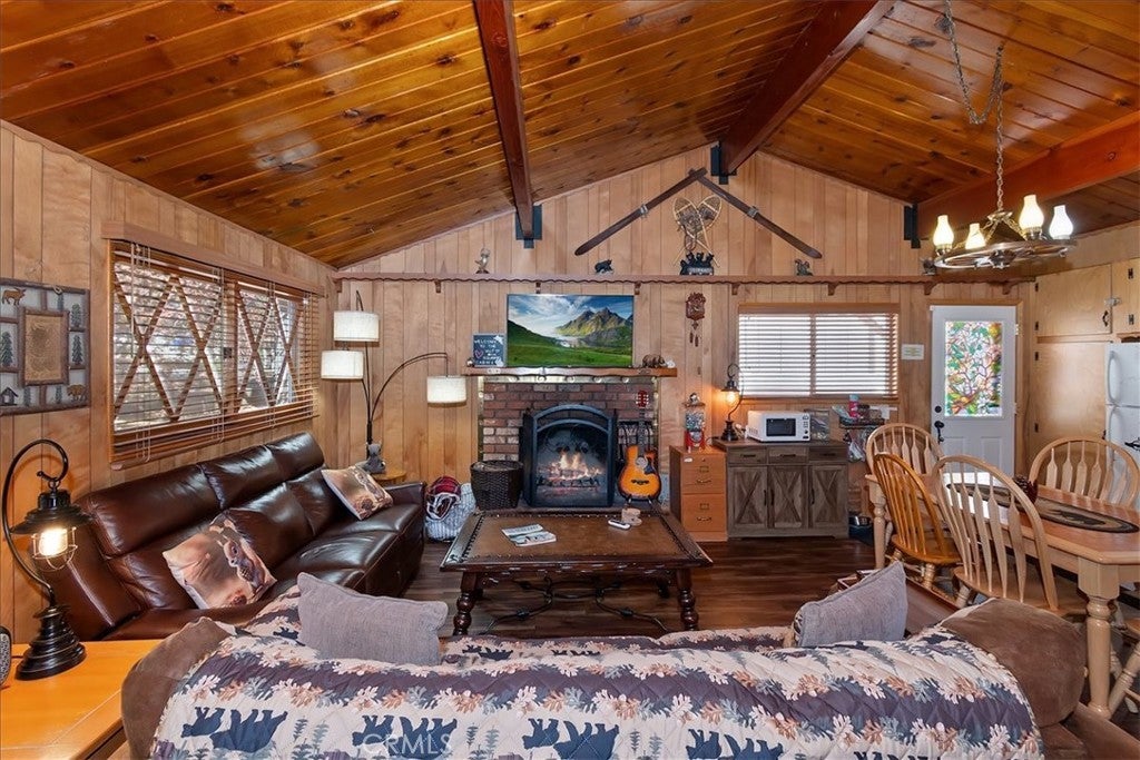Welcome to your ideal Big Bear cabin retreat—where mountain charm, modern convenience, and unbeatable location come together. This inviting 2-bedroom, 1-bath home sits on a spacious 7,620 sq ft lot and offers that classic cabin feel buyers are looking for, complete with a cozy brick fireplace—perfect for snowy evenings and year-round ambiance. Step outside to a fully fenced, flat backyard designed for both relaxation and play. There’s plenty of room for pets, kids, and entertaining, plus an additional storage shed for all your mountain gear. The property also features ample parking for multiple vehicles—an absolute must for hosting guests or accommodating short-term rental stays with ease. Thoughtful upgrades include an updated electrical panel and an electric vehicle charger, blending rustic charm with modern-day functionality. Ideally located within walking distance to the Big Bear Alpine Zoo, Rathbun Creek Trail, shuttle parking for the ski slopes, and the lively Moonridge Corridor filled with shops and restaurants—this home puts you right in the center of everything Big Bear has to offer. Currently set up as a successful short-term rental, this property presents a fantastic opportunity as a primary residence, weekend escape, or income-producing investment.