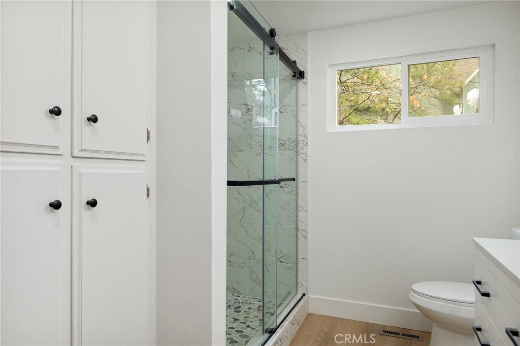 Tucked away in the forested hills of Lake Arrowhead, this newly remodeled cabin is the perfect mountain living experience. The vaulted ceilings and a bright, open-concept layout welcome you with a perfect blend of rustic warmth and modern elegance. The main level features a spacious master suite with a beautifully updated full bath, side deck, and just off the kitchen and living room is a large deck with secluded views of the forest. Every room and space in the home offers a view of forest and vibrant seasons colors and peaceful mountain scenery. Upstairs, you’ll find two generously sized bedrooms, a 3/4 bath, and a cozy loft ideal for an office, reading nook, or play area. With its quiet forest setting, tasteful design, included lake rights, and proximity to local amenities, this home is perfect for entertaining, relaxing, and making lifelong memories. Just down the street from the country club and national forest boundary, 5 minutes to the west shore of Lake Arrowhead and Tavern Bay Beach Club, and 10 minutes to Lake Arrowhead Village and Blue Jay, you get the best of both worlds: a peaceful retreat with quick access to the area’s most loved activities. This is a rare opportunity for buyers seeking both beauty and tranquility in the mountains. Don’t miss the chance to explore this home’s professional website!
