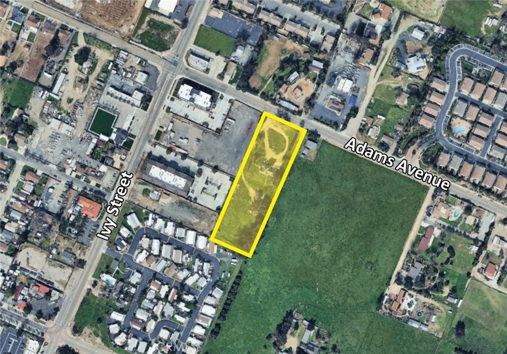 The subject property is approximately 2.65 acres of relatively flat land with an existing single-family home as well as a small dwelling unit toward the back of the property. The property has approximately 185 feet of frontage along Adams Ave and is approximately 630 feet in length. To the south of the property is large 19 acre property with approved plans for 107 single family residential homes. This is a project that will be built by Century Communities with construction commencement anticipated for Q1 2025. Immediately to the north of the property are two multi-tenant office buildings totaling a combined 56,000+ SF of office space, as well as an equipment rental yard. The property is just 1.3 miles from I-15 at Murrieta Hot Springs Rd and 1.2 miles from I-15 at Kalmia St. Water and Power currently serve the existing structures on the property. There appears to be an existing storm drain in Adams Ave with the closest sewer available at the nearby Medical Office Building at the corner of Adams Ave & Ivy St.