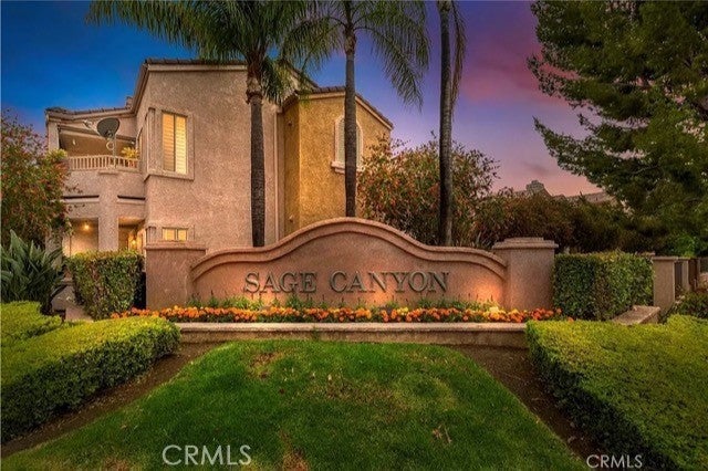 Welcome to the Sage Canyon Community which features a perfect blend of comfort, convenience, and lifestyle amenities. This unit has been completely remodeled in April, 2016 — kitchen cabinets, faucet, Whirlpool Gold appliances, lighting, and flooring, bathroom cabinets, faucets, lighting, countertop, tub, tile tub surround, shower enclosure, toilet, and flooring. New GE full-size stacking laundry in unit 2019. This outside corner end-unit with a gorgeous hillside views is a haven of privacy, minimal foot traffic, and low noise. One large bedroom and one spacious bathroom with dual sliding glass doors open to the ultra-private patio. This end unit has a light and bright living area open to the kitchen. Elegant custom crown moulding in main living areas, beautiful natural wood laminate flooring throughout, large cement-look floor tiles, white quartzite countertops, and large rectangular wood grain look shower tiles in the bathroom, along with custom oversized baseboards, all adding unique touches of elegance. Recessed low energy use lighting has been added through-out the unit and includes a dimmer switch in the kitchen. The hillside views directly out the kitchen window, dual sliding glass doors, and living area window are stunning! The private balcony is a great place to enjoy morning coffee or unwind after a long day. The kitchen is well-equipped with modern white wood cabinets, granite countertops, stainless steel sink and appliances, making it both functional and stylish. An inside laundry room is a convenient feature. The primary bedroom features a spacious walk-in closet. The bathroom has been completely remodeled, down to every detail. The unit’s assigned parking space is under a covered carport. Sage Canyon's amenities are impressive, with a clubhouse, fitness room, swimming pool, 2 spas, beach volleyball court, and basketball hoops. It's great to know that the association includes water, trash, and sewer. Perfect location for commuters, on the edge of Orange County, with accessibility to major freeways and the train is a significant advantage. For outdoor enthusiasts, the expansive Skyline Trail area for hiking and biking are a fantastic bonus. If you're looking for a new home, don't miss this one!