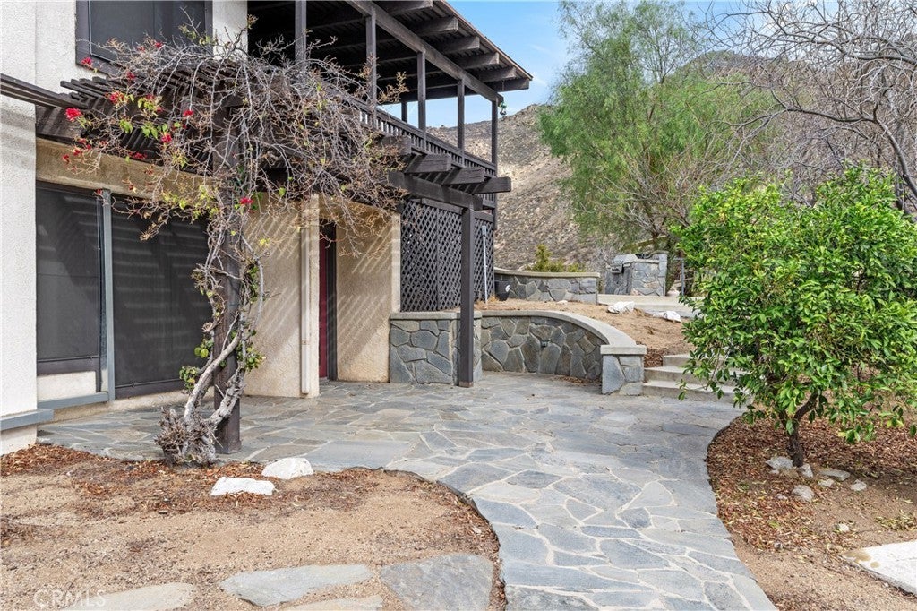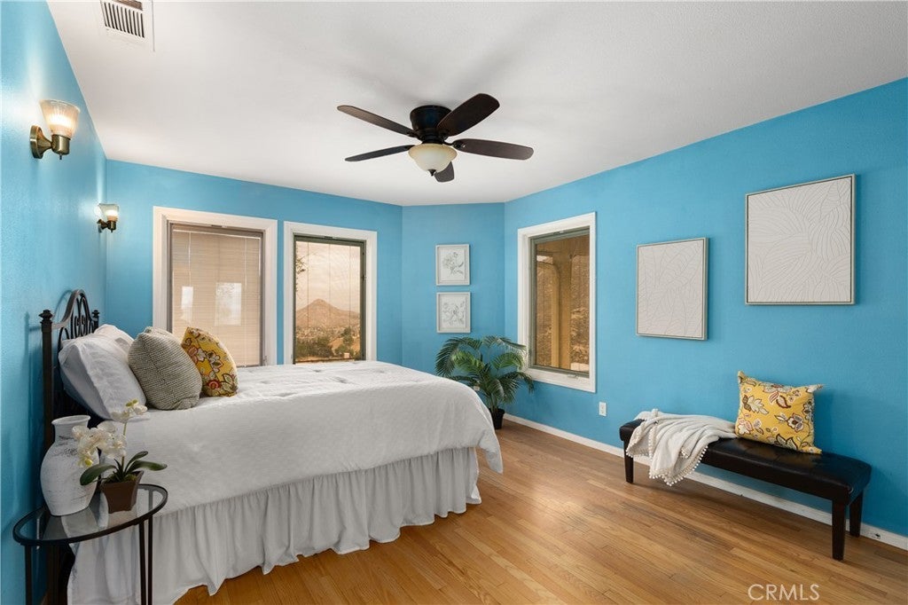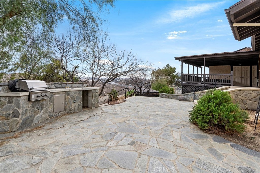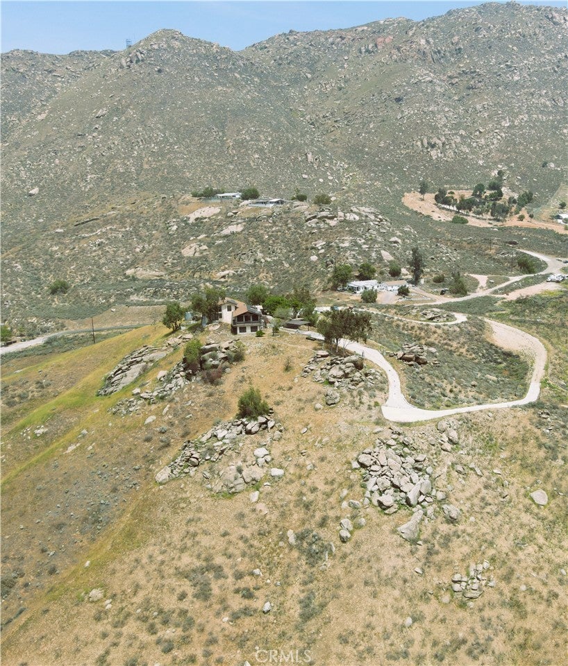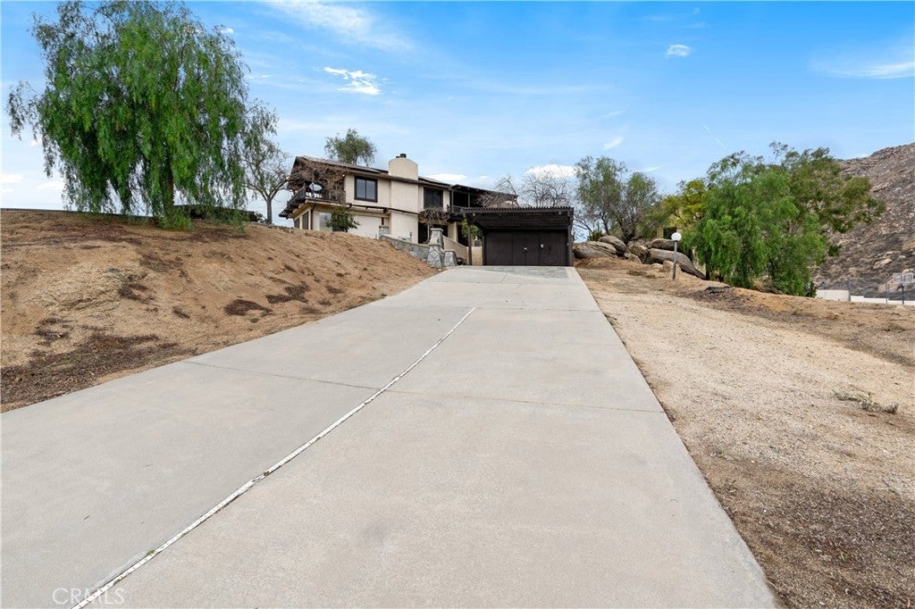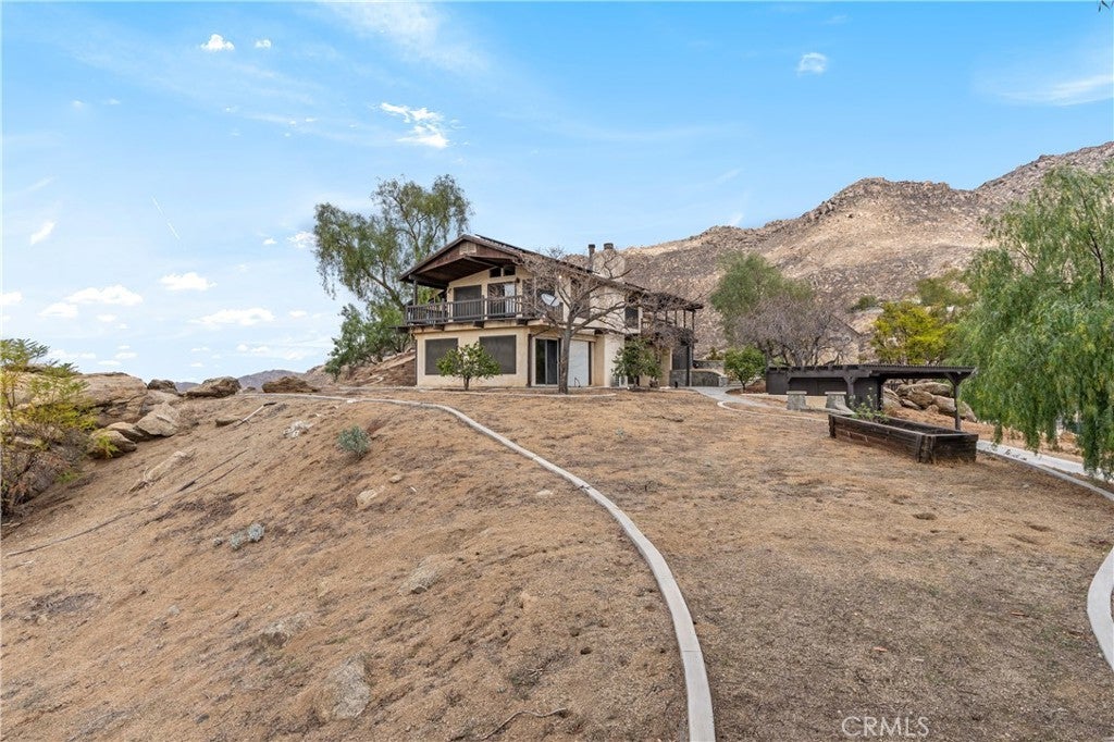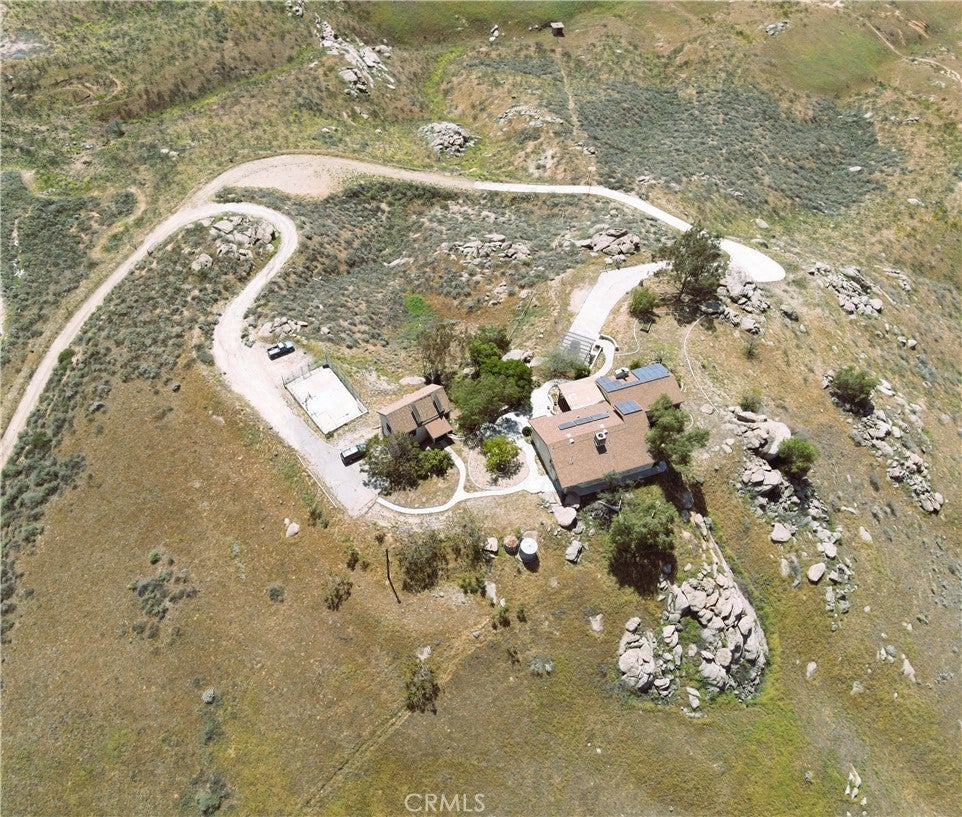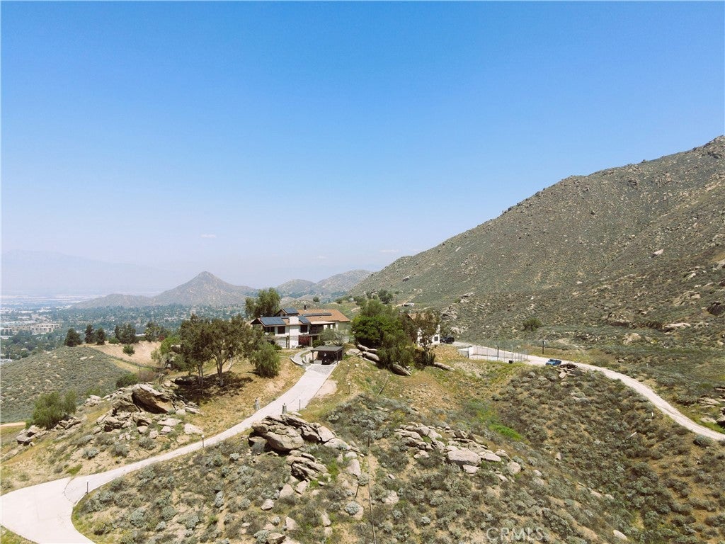 Imagine living in a serene hilltop custom-built home designed for luxury and modern convenience. Nestled in the Box Springs Mountain range, this home offers both privacy and expansive open living spaces. Perfect for those seeking off-the-grid living, this 12-plus-acre paradise offers the perfect blend of self-sufficiency and connection with two wells, solar panels, and two septic systems. Plus, you’re connected to electricity with the public utility providing extra peace of mind. Step inside to discover exquisite hardwood flooring and broad windows that flood the space with natural light and showcase breathtaking panoramic views. The vaulted natural wood ceilings in the living spaces provide a spacious atmosphere. There are two main living rooms, which both offer places for entertaining, dining, and enjoyment of this hill top paradise. The dining and living rooms boast unparalleled views of Mount Baldy, creating a mesmerizing backdrop for every meal and moment. Picture yourself relaxing on the living room balcony, taking in the stunning west-facing vistas of the mountains and twinkling city lights. With two bedrooms upstairs and a primary suite downstairs, this home provides fantastic flexibility for any lifestyle. The lower bedroom in the main home could easily be converted into a JR ADU, offering great potential for multi-generational living or additional revenue. Additionally, the property features a detached ADU which sits over the two-car garage. Also home has a half-court basketball court. The ADU has its own living area, kitchen, bedroom, and bathroom (450 sq ft +/-)—a fabulous bonus for guests or potential rental income. Zoned as R1, there's potential to subdivide the property for future investment or development opportunities. This hilltop retreat is your chance to experience the best of both worlds—secluded, self-sustaining living with the comfort and connection of modern amenities. Don't miss out on this unique opportunity to call this remarkable property your home.