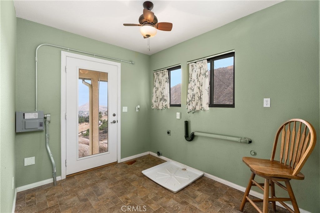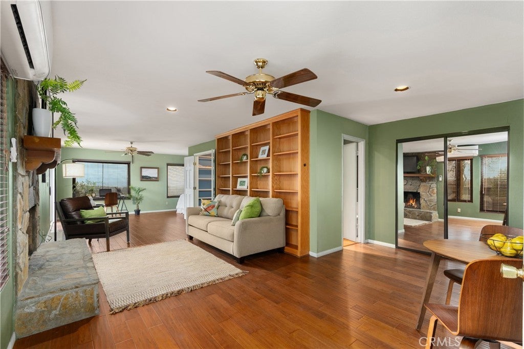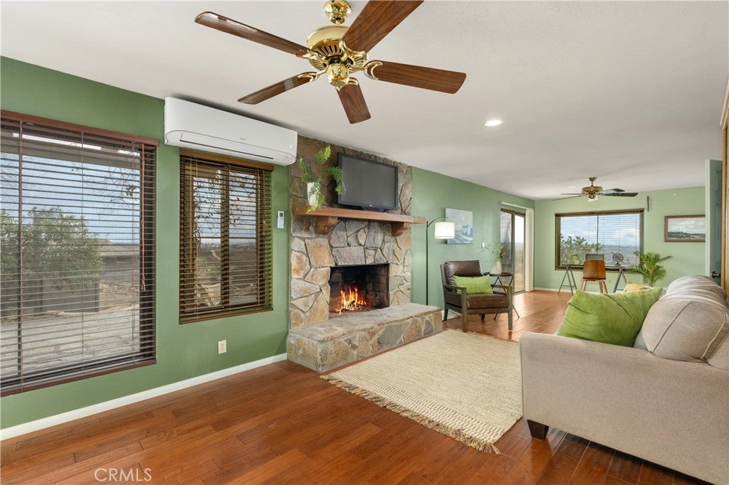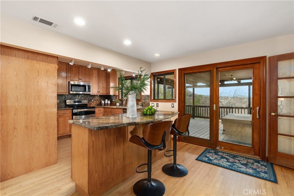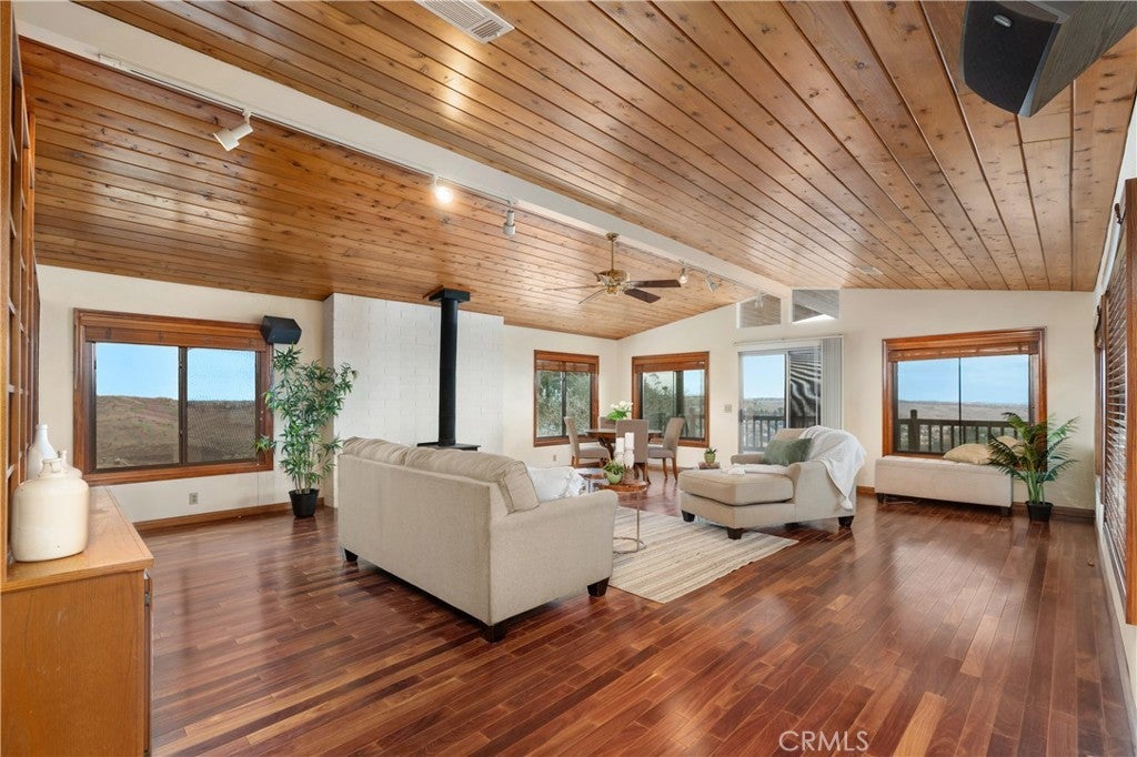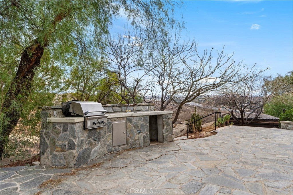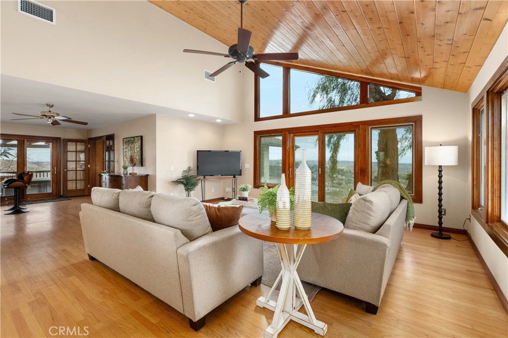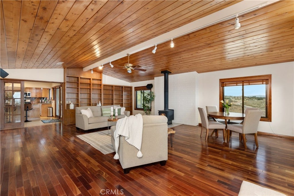 Imagine living in a serene hilltop custom-built home designed for luxury and modern convenience. Nestled in the Box Springs Mountain range, this home offers both privacy and expansive open living spaces. Perfect for those seeking off-the-grid living, this 12-plus-acre paradise offers the perfect blend of self-sufficiency and connection with two wells, solar panels, and two septic systems. Plus, you’re connected to electricity with the public utility providing extra peace of mind. Step inside to discover exquisite hardwood flooring and broad windows that flood the space with natural light and showcase breathtaking panoramic views. The vaulted natural wood ceilings in the living spaces provide a spacious atmosphere. There are two main living rooms, which both offer places for entertaining, dining, and enjoyment of this hill top paradise. The dining and living rooms boast unparalleled views of Mount Baldy, creating a mesmerizing backdrop for every meal and moment. Picture yourself relaxing on the living room balcony, taking in the stunning west-facing vistas of the mountains and twinkling city lights. With two bedrooms upstairs and a primary suite downstairs, this home provides fantastic flexibility for any lifestyle. The lower bedroom in the main home could easily be converted into a JR ADU, offering great potential for multi-generational living or additional revenue. Additionally, the property features a detached ADU which sits over the two-car garage. Also home has a half-court basketball court. The ADU has its own living area, kitchen, bedroom, and bathroom (450 sq ft +/-)—a fabulous bonus for guests or potential rental income. Zoned as R1, there's potential to subdivide the property for future investment or development opportunities. This hilltop retreat is your chance to experience the best of both worlds—secluded, self-sustaining living with the comfort and connection of modern amenities. Don't miss out on this unique opportunity to call this remarkable property your home.