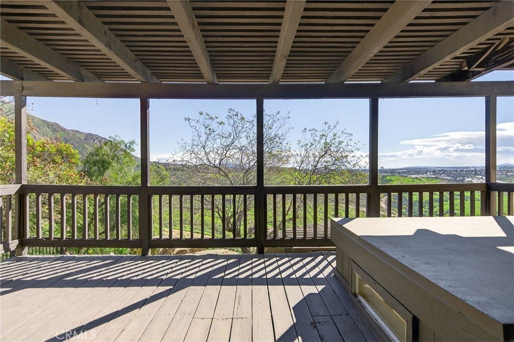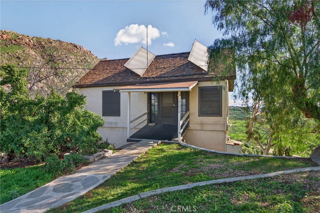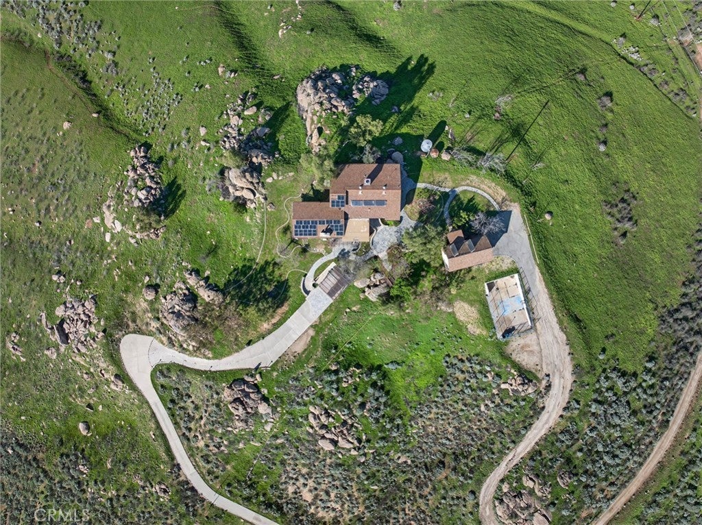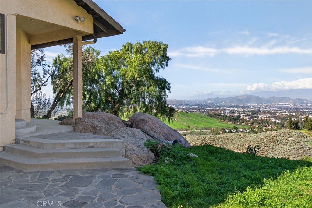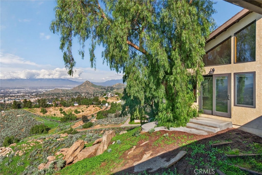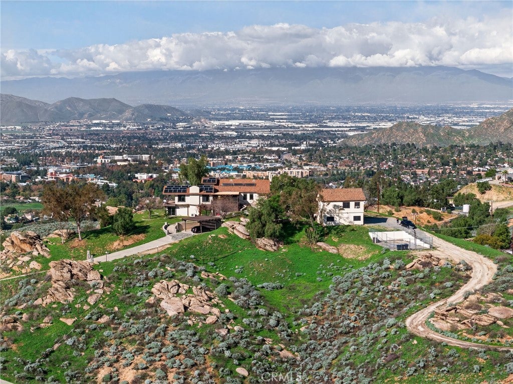 Imagine living in a serene hilltop custom-built home designed for luxury and modern convenience. Nestled in the Box Springs Mountain range, this home offers both privacy and expansive open living spaces. Perfect for those seeking off-the-grid living, this 12-plus-acre paradise offers the perfect blend of self-sufficiency and connection with two wells, solar panels, and two septic systems. Plus, you’re connected to electricity with the public utility providing extra peace of mind. Step inside to discover exquisite hardwood flooring and broad windows that flood the space with natural light and showcase breathtaking panoramic views. The vaulted natural wood ceilings in the living spaces provide a spacious atmosphere. There are two main living rooms, which both offer places for entertaining, dining, and enjoyment of this hill top paradise. The dining and living rooms boast unparalleled views of Mount Baldy, creating a mesmerizing backdrop for every meal and moment. Picture yourself relaxing on the living room balcony, taking in the stunning west-facing vistas of the mountains and twinkling city lights. With two bedrooms upstairs and a primary suite downstairs, this home provides fantastic flexibility for any lifestyle. The lower bedroom in the main home could easily be converted into a JR ADU, offering great potential for multi-generational living or additional revenue. Additionally, the property features a detached ADU which sits over the two-car garage. Also home has a half-court basketball court. The ADU has its own living area, kitchen, bedroom, and bathroom (450 sq ft +/-)—a fabulous bonus for guests or potential rental income. Zoned as R1, there's potential to subdivide the property for future investment or development opportunities. This hilltop retreat is your chance to experience the best of both worlds—secluded, self-sustaining living with the comfort and connection of modern amenities. Don't miss out on this unique opportunity to call this remarkable property your home.