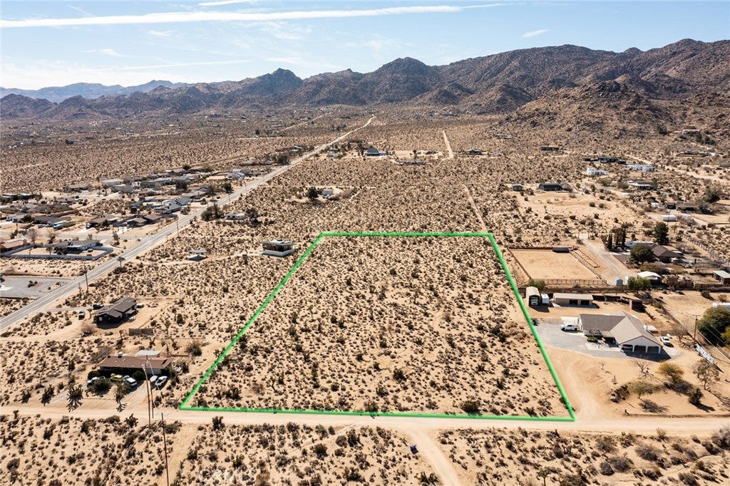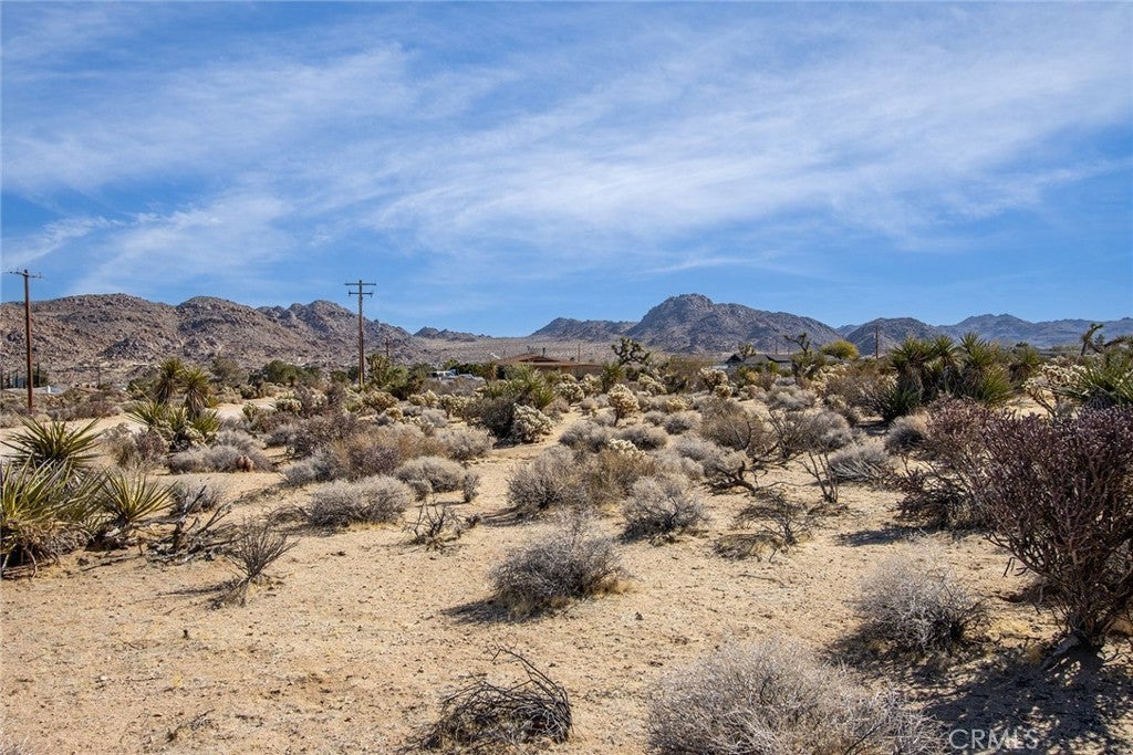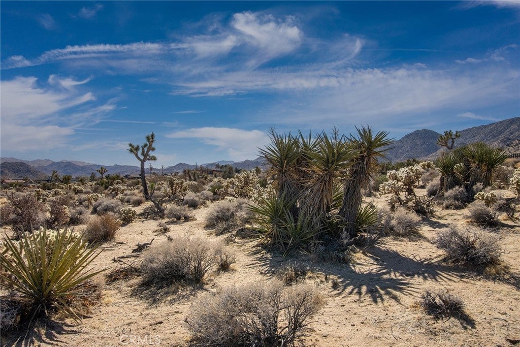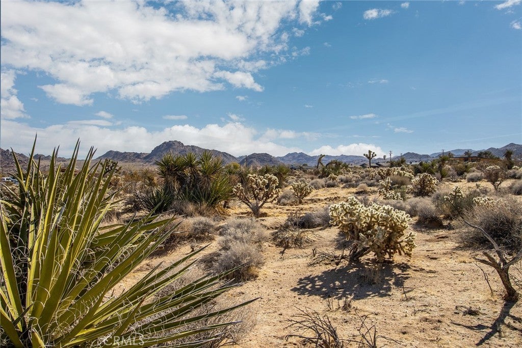 Discover the perfect opportunity to own 5 acres of pristine desert land on Onaga Trail. Ideally located just 5 minutes from the Park's entrance and a short drive to the heart of downtown, this property offers both seclusion and convenience. Enjoy stunning panoramic views of the downtown Joshua Tree skyline, along with breathtaking desert landscapes, rolling hills, and endless starry skies. Whether you’re looking to build a dream home, create a vacation retreat, or invest in a growing market. With easy access to major roads, Paid water meter, electricity near by Surrounded by new construction homes and a peaceful setting surrounded by Joshua Trees and native wildlife, this property blends nature, privacy, and accessibility. Don’t miss this rare opportunity—experience the magic of Joshua Tree and make this land yours today! Google Coordinates (34.1143525, -116.3197050) APN: 0588-224-06-0000