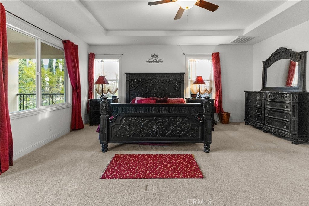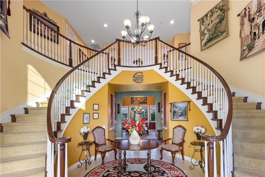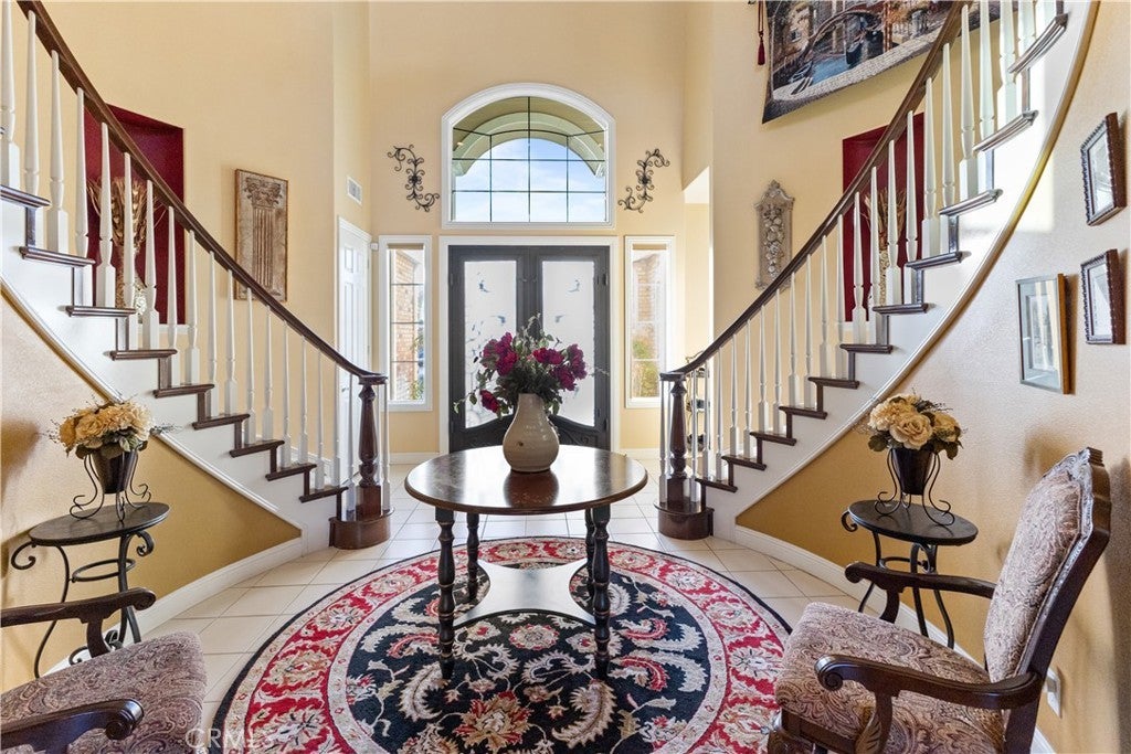 Stunning 2-story Toll Brothers home located in the private GATED community of East Highland Estates. This beauty is loaded with amenities. A must-see featuring 5 bedrooms, 4 1/2 bathrooms, 10-foot ceilings, and 8-foot doors. The HUGE master bedroom suite features a walk-in closet and French doors to a lovely balcony. The master bath boasts beautiful upgraded tile around the oversized shower, a soaking tub, double sinks, and a vanity. The gourmet kitchen is a chef's dream, which includes a large center island, beautiful dark cabinetry, granite counters, and Whirlpool Gold stainless appliances with double ovens. One of the downstairs bedrooms would make a great library or office. The backyard is lovely and features many fruit trees, including tangerines, a peach tree, a fig tree, a loquat tree, a delicious, producing champagne grape vine, and many other mature plants.