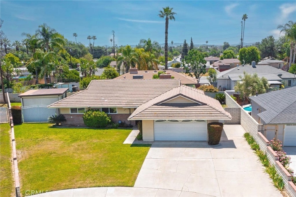 Nestled on a quiet cul-de-sac in Riverside’s Ramona neighborhood, this welcoming home has just been refreshed for its next chapter. Inside, newly finished walls, fresh interior paint, new light fixtures and new laminate flooring in the living room, hallway, and bedrooms create a bright, cohesive feel throughout. A new water heater adds everyday comfort and peace of mind. The inviting living room centers around a charming white brick fireplace, while the kitchen offers granite countertops, upgraded cabinetry, glass display doors, recessed lighting, and convenient roll-out shelving. A spacious bonus/family room provides added flexibility for relaxing, entertaining, or multi-use living. Interior laundry add to the homes convenient and comfortable living. Out back, a covered patio overlooks beautifully landscaped gardens with plumeria, hibiscus, roses, palms, and more—wonderfully maintained. A rare highlight of this property is the two separate 2-car garages—one attached and one detached—offering ample space for vehicles, storage, or projects. Conveniently located near schools, parks, shopping, dining, and freeway access, this refreshed home delivers comfort, charm, and everyday ease in a peaceful neighborhood setting.
