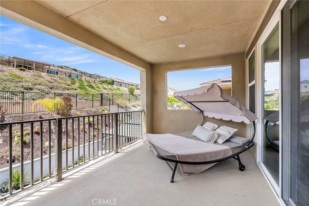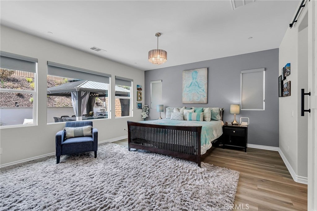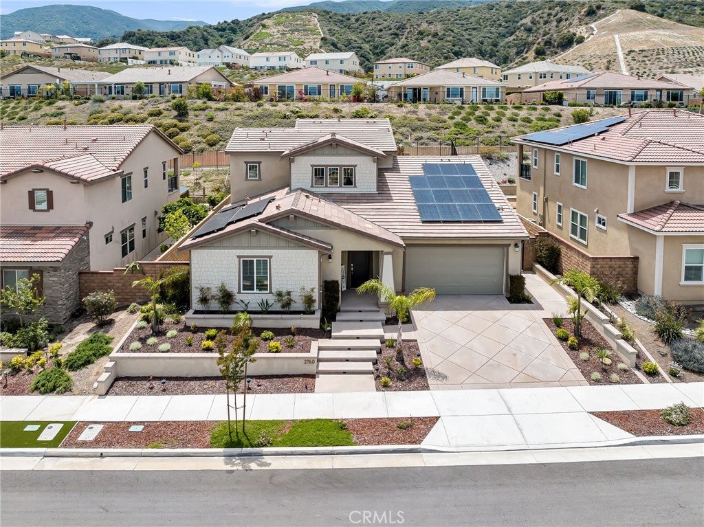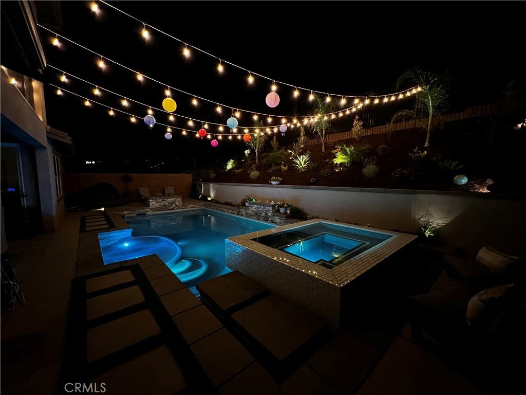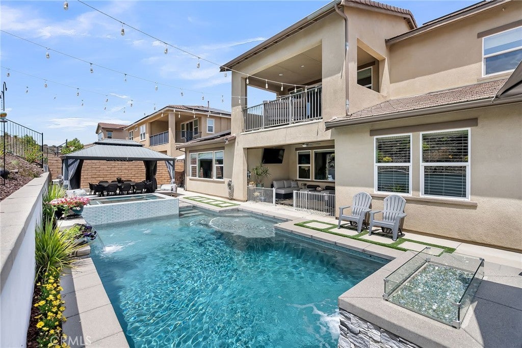 Welcome to the luxurious gated community of Sierra Bella in Corona! This pool home provides beautiful views of the Inland Empire, as well as high-end upgrades throughout. The entry sets the tone for the rest of the home. Natural light shines through and illuminates the white shiplap walls and helps light your way into the open living space. The oversized living room is central to the home and leads into both the kitchen and the downstairs primary bedroom suite. The kitchen is a chef’s dream! Including a central island, the kitchen has plenty of counterspace, cabinetry, high end appliances, step in pantry, and built in refrigerator. The dining room is open to both the kitchen and living room and leads to the backyard through the slider. 3 bedrooms are located on the first floor of the home including the aforementioned main bedroom suite. This tranquil owner’s suite is large and has peaceful views of the backyard pool and lights. The suite includes a bathroom with dual sinks, walk in shower, soaking tub, and large walk-in closet. The other two guest bedrooms on the other side of the first floor are spacious and have a full bathroom nearby. Lastly downstairs, you have a full laundry room. The stairs in this home include upgraded bannisters that help to make the space feel more open as well. Upstairs there is a massive loft, guest bedroom and full bathroom, as well as a covered back patio that overlooks the backyard. The backyard space has been thoughtfully designed with your entertainment in mind! The large pool and spa are the main attraction with peaceful spillways and fire feature to complete the right ambiance for your evening get-togethers. Relax and unwind while you lay out on the oversized daybed. Enjoy a formal dinner with family and friends under the gazebo or escape the sun in the covered California room just outside the home. This home provides peace and serenity with a touch of luxury! Located near the 91 Freeway and Fastrak entrance, this home is a commuter's dream!