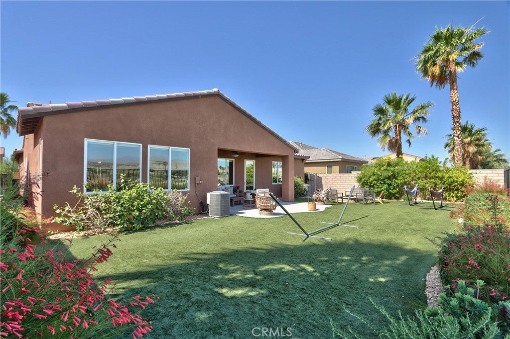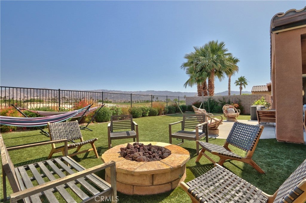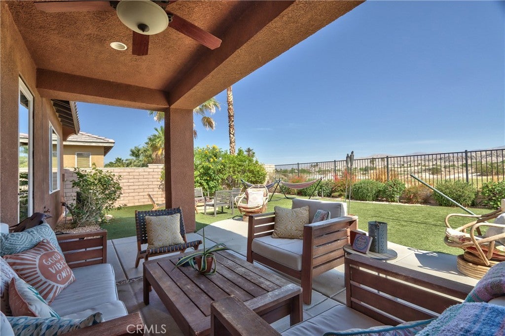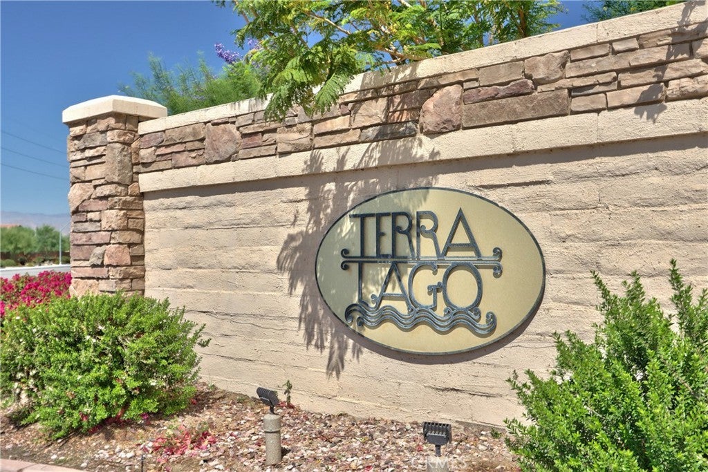 PRICE DROP!!!!!!!!!! 50K BETTER HURRY!!!!!!!!!!!WELCOME TO YOUR NEW HOME IN THE UPSCALE PRIVATE GATED COMMUNITY OF TERRA LAGO. THIS IS A GREAT OPPORTUNITY FOR YOU TO OWN A TURN KEY HOME WHERE ATTENTION TO DETAIL IS EVIDENT. BEAUTIFUL AND SPACIOUS COURTYARD LEADING UP TO YOUR FRONTDOOR.THE HOME IS LOCATED ON THE GOLF COURSE WITH AWESOME VIEWS OF THE COURSE AND MOUNTAINS.THIS HOME BOASTS 4 BEDROOMS, 3 FULL BATHS IN 2472 SQ FEET OF PURE LUXURY. THE KITCHEN HAS CUSTOM CABINETS, GRANITE COUNTER TOPS AND A HUGE CENTER ISLAND BAR.THE BEAUTIFUL LARGE PRIMARY BEDROOM HAS HUGE WALK-IN CLOSET THAT IS READY FOR YOUR BELONGINGS, AWESOME VIEWS OF THE MOUNTAINS AND FRENCH DOORS GOING OUT TO THE PATIO FOR YOUR MORNING COFFEE. THERE IS A DUAL UNIT AC WITH 3 ZONES AND A BUILT IN SURGE PROTECTOR. THE HOME COMES WITH YOUR OWN CUSTOM HIGH-END HOME THEATER ROOM ANCHORS THE SPACIOUS SINGLE LEVEL FLOOR PLAN. THERE IS AN ATTACHED 3 CAR TANDEM GARAGE WITH IT'S OWN TESLA CHARGING STATION. THE BACK YARD HAS A COVERED PATIO LOOKING OUT OVER THE GOLF COURSE WITH MOUNTAIN VIEWS WHILE YOU ENJOY YOUR NIGHT IN FRONT OF THE FIRE PIT. THIS HOME IS PRICED TO SELL FAST SO DON'T HESITATE OR YOU WILL MISS OUT!!!!!!!! LOW STR FEES AND NO RESTRICTIONS. DUES INCLUDE GUARDED GATES, 2 RESIDENT GATES, HIGH SPEED INTERNET AND DIRECT TV. YOU ALSO ENJOY 24 HOUR GATED ACCESS,LAKE ACCESS,CLUBHOUSE AND POOL ACCESS. ELECTRICTY IS THRU IID FLAT RATE NON-TIERED RATE. EFFICIENT LANDSCAPING WITH ARTIFICIAL TURF IN BACK YARD. PROPERTY IS LOCATED 30 MINUTES FROM JOSHUA TREE NATIONAL PARK.