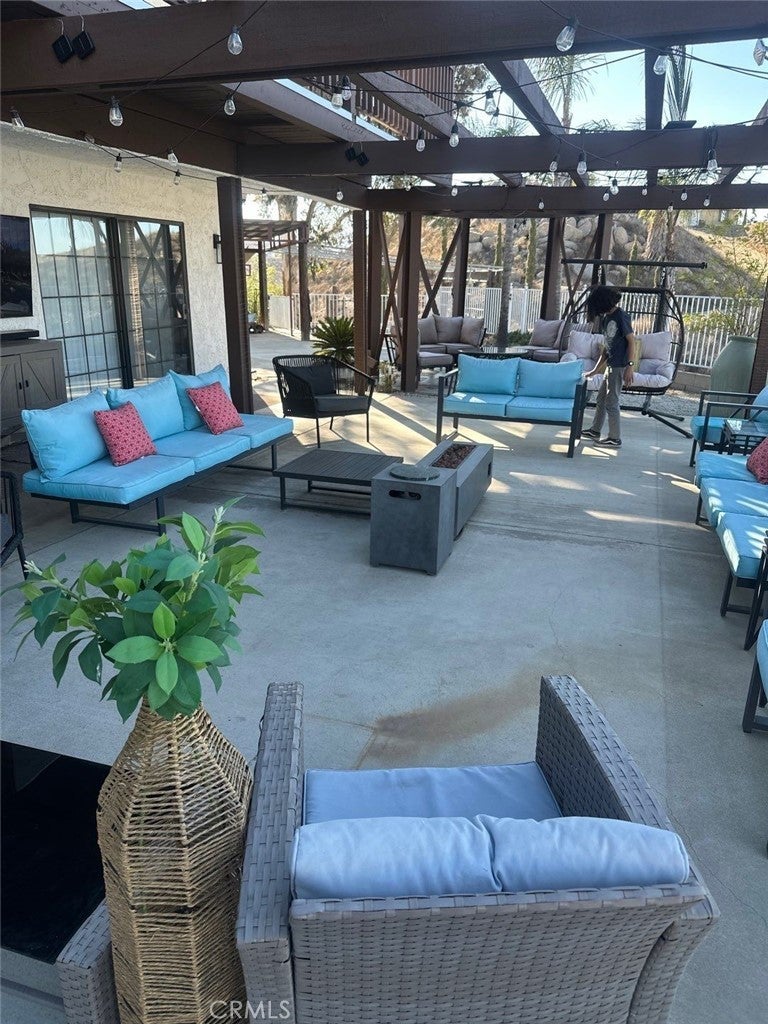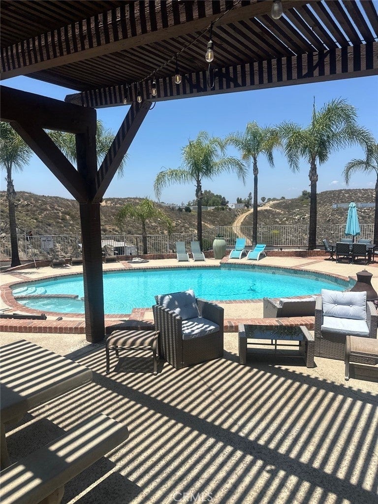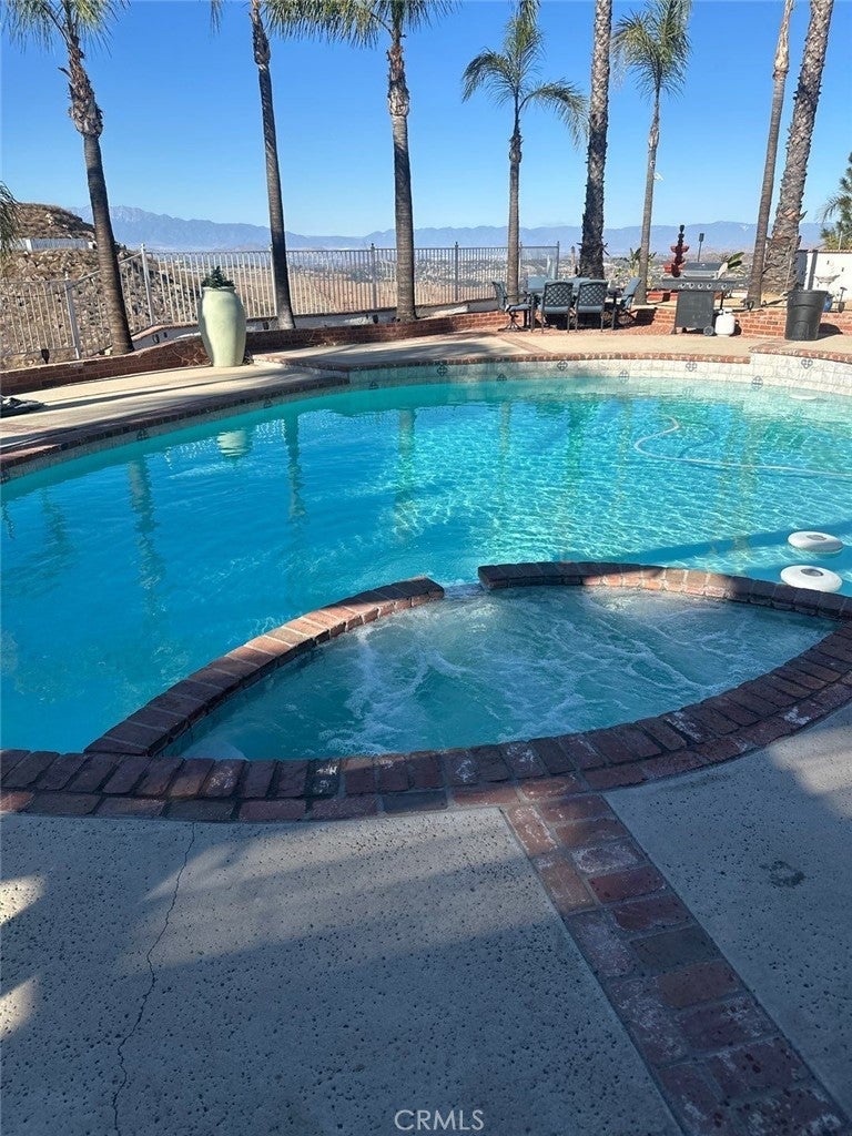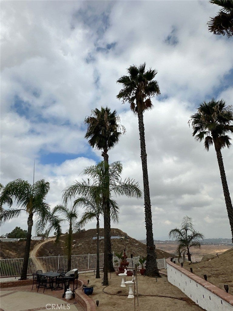 Newly Refurbished and fully furnished, resort like home, almost 3,000 sq. ft. of living space and sitting on a hill with views as far as eyes can see on almost four acres of land. Located in the much desired area of Lake Matthews Perris, Riverside County. Close to both Freeways 15 and 215, yet far removed enough for the serenity of a hill top residence overlooking the city of Riverside and views as far as Rialto, Fontana Ontario and the resort mountains. 4 bedrooms 3 baths, gorgeous pool. Bring your horses and all your other toys. Zoned for animals and located on a quiet cul-de sac. New kitchen, custom cabinets, custom wood floors. Fenced with remote control front gate. Olympic size pool, two car garage, four patios and beautiful palm trees. Plenty of space for RV parking, boat and other toys.