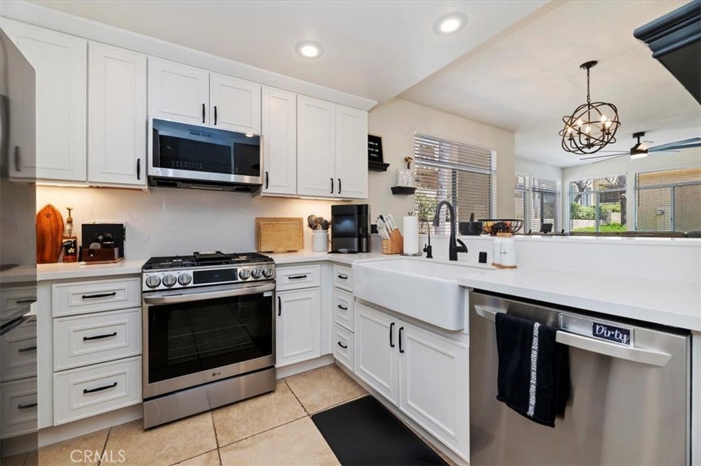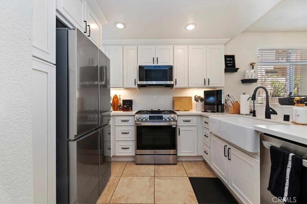 Beautiful Renovated Lower Level Condo located in the Desirable Hills of the Sierra Del Oro Community. This Gorgeous Condo is close to Orange County and features Elegant Shaker Cabinetry, Quartz Countertops with Full Backsplash, Under Cabinet Lighting, a Farm Sink, Black Faucets and LG Stainless Appliances. Doing laundry is a breeze Full Size Stackable Front Loading Washer and Dryer inside the unit. Parking is convenient with a Semi-attached One Car Garage and One Assigned Covered Carport. This unit is located near the pool and provides the serene view of palm trees, and the hills of the Cleveland National Forest from your patio. Other features: Newer Water Heater, Newer shower valves, HVAC system was replaced in the last few years. Location, Location, Location! It is a MUST see!