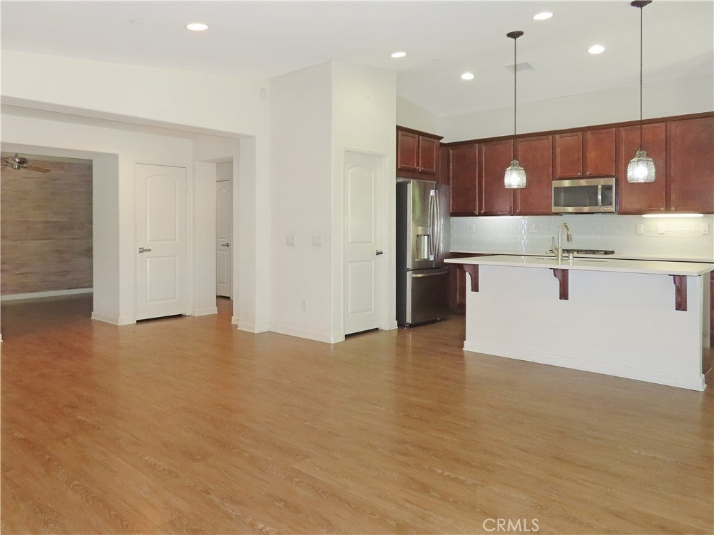 Welcome to 29348 Tournament, in the highly desirable Summerly community. Upon entry, you will notice the openness of the house with high ceilings and lots of natural light. Spacious family room opens to the family kitchen. This upgraded kitchen has quartz counter tops, custom back splash, cabinets, built-in cook top, upgraded stainless steel appliances, island w/breakfast bar and deep tub sink, and walk-in pantry. Formal dining room right next to the kitchen. Living room/office/playroom with wood accent wall can easily be converted into 4th bedroom. Spacious master bedroom with vaulted ceiling and room for a retreat. Master bathroom has separate shower and tub, dual sinks with quartz counter tops, and walk-in closet. 2 bedrooms, laundry room, laundry drop zone, and main bathroom with double sinks down the hallway. Through the sliding glass door at the family room, step outside to the adjoining covered veranda and a private backyard with stamped colored concrete floor and grass area perfect to sit down, relax, and enjoy the firework show during baseball season with no neighbors behind you! Upgrades include: recessed lights, custom paint, tankless water heater, laminate floors, and lots more to mention. Summerly is a master planned community which is located across the street from Storm Stadium, 18 hole golf course, and is close to shopping, restaurants, entertainment, and 15 FWY! 2 car garage. Did I mention PAID-OFF SOLAR and Tesla charger for electric vehicles. It can't get any better than this. What are you waiting for! Make this your home today!