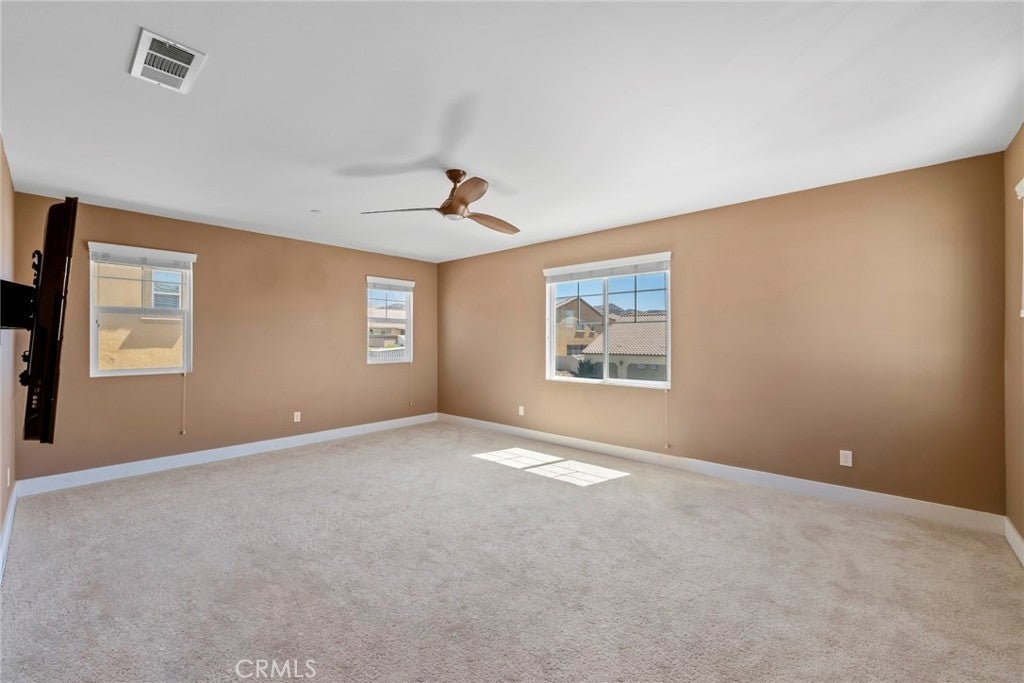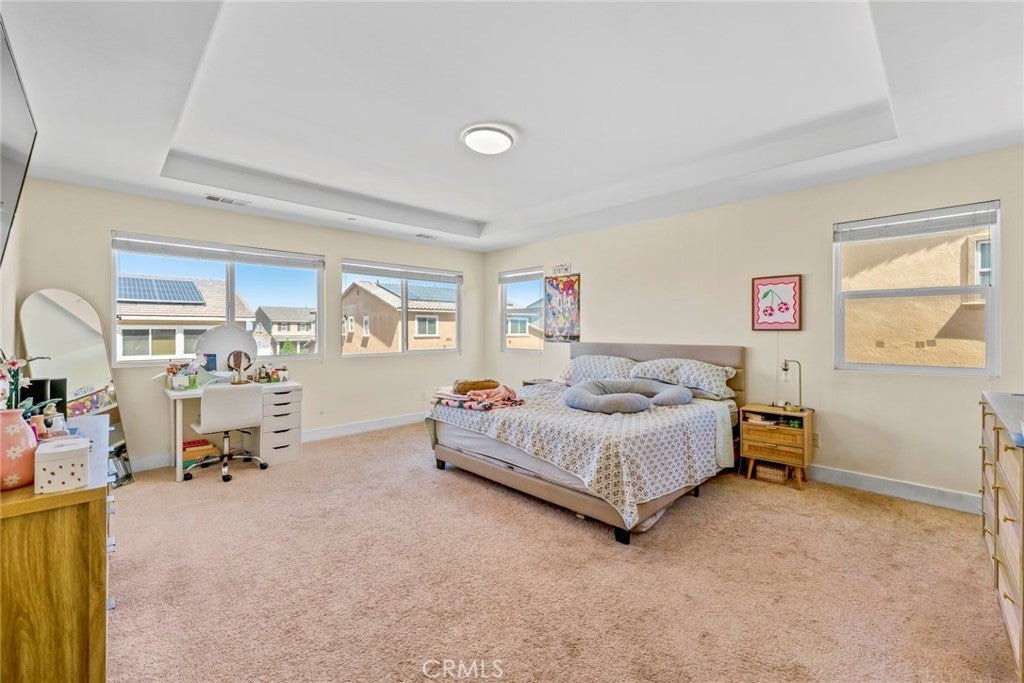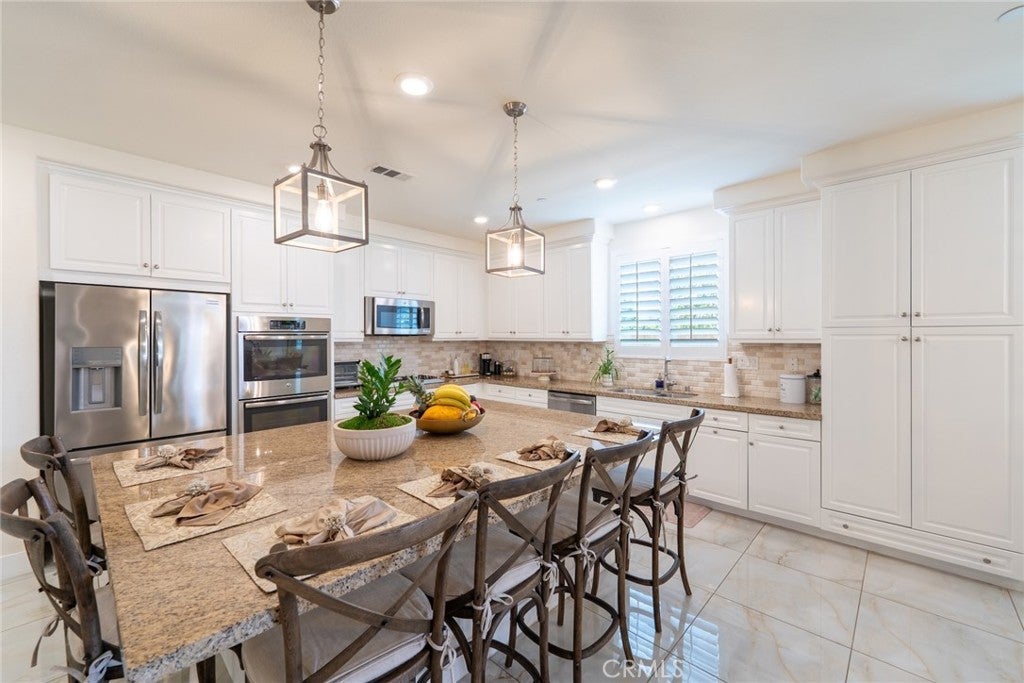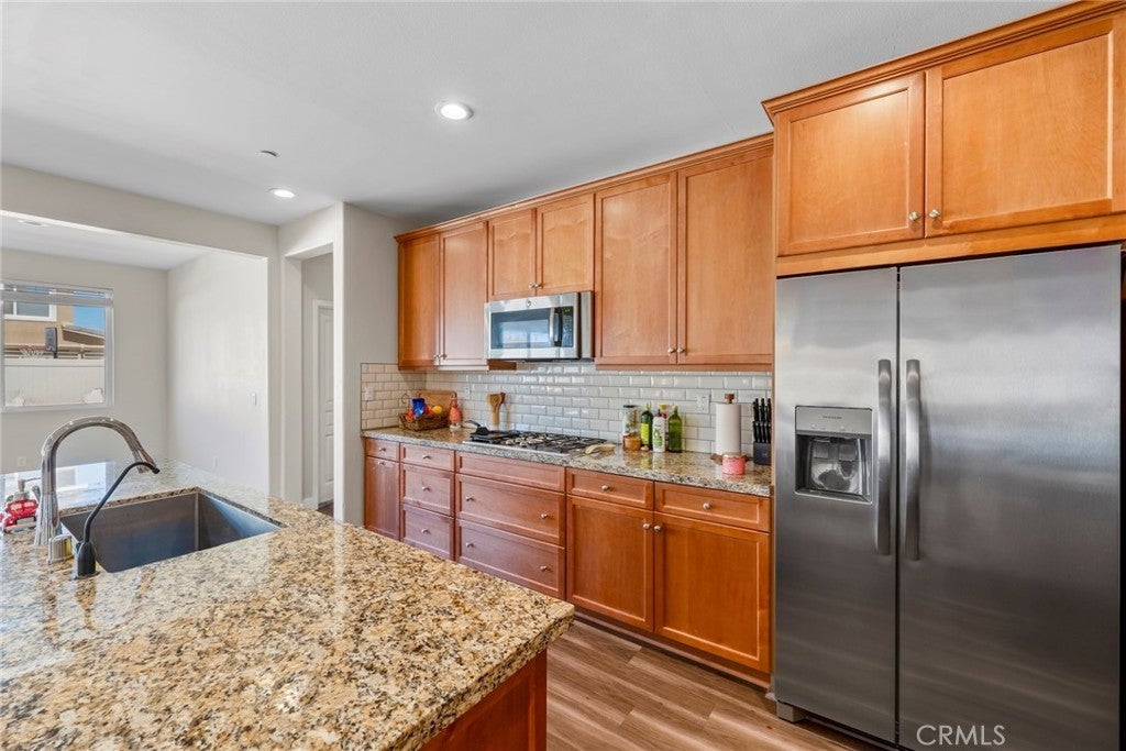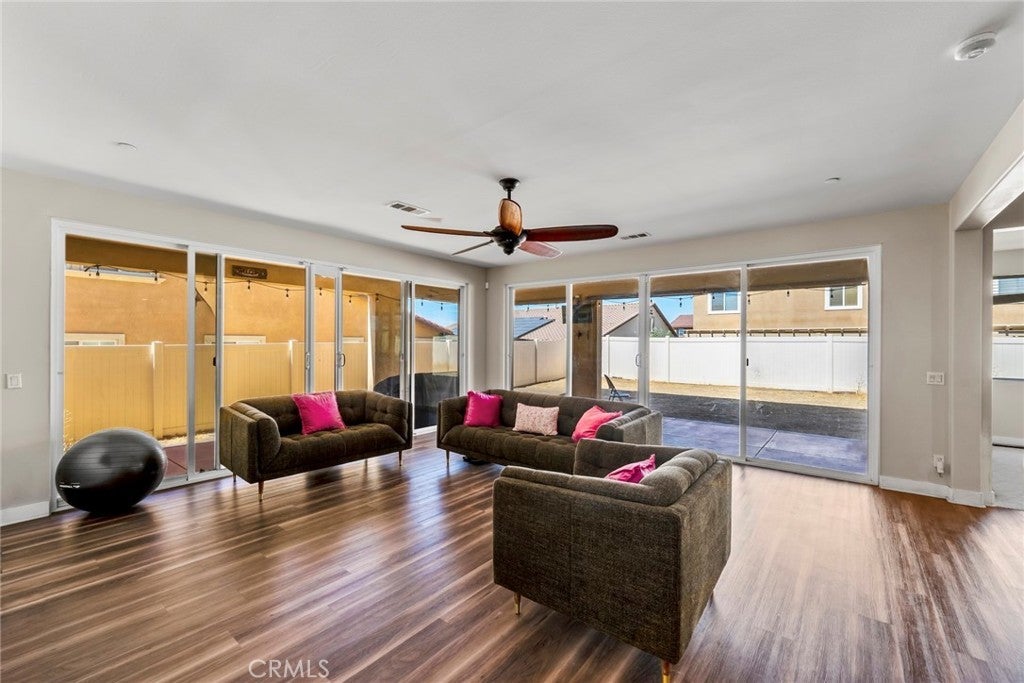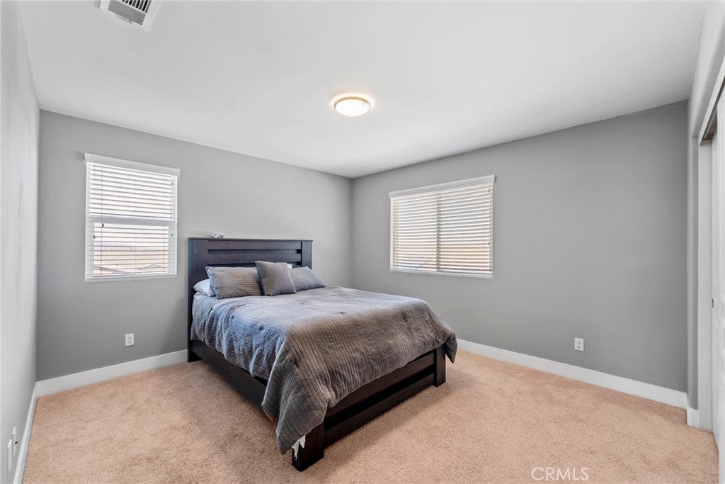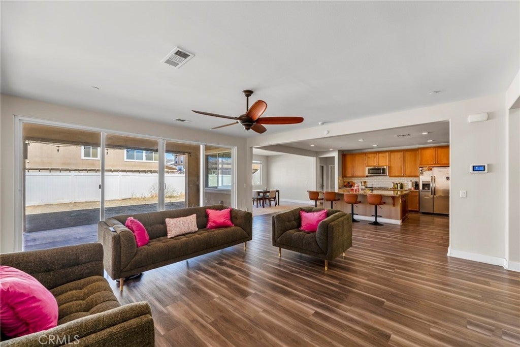 This expansive two-story home offers approximately 3,753 square feet of thoughtfully designed living space, including 6 bedrooms and 4 full bathrooms, making it ideal for growing families or multi-generational living. The layout features a spacious living area, a formal dining room, and a gourmet kitchen complete with an oversized granite island, double ovens, walk-in pantry, and ample cabinetry. Throughout the home, you'll find elegant finishes like dark wood-style laminate flooring downstairs, plush carpeting upstairs, and granite countertops in kitchens and baths. In addition to having a gorgeous interior layout, by stepping outside you'll find a beautifully maintained backyard with a wraparound concrete patio, ideal for relaxing, hosting, or gardening. solar lease to be transfer to new buyer at close of escrow
