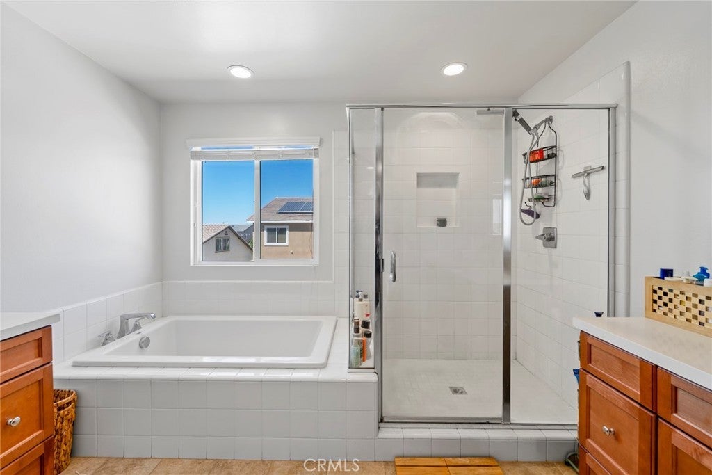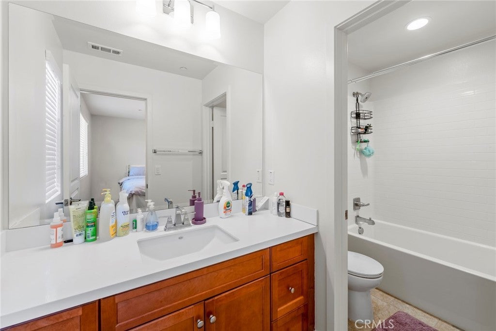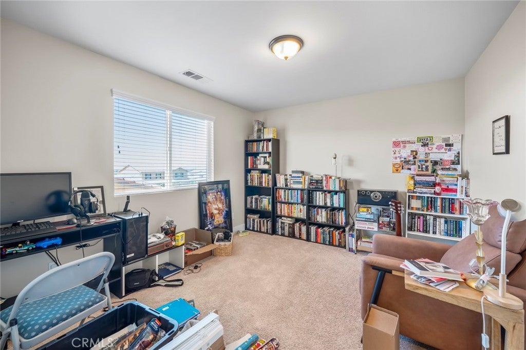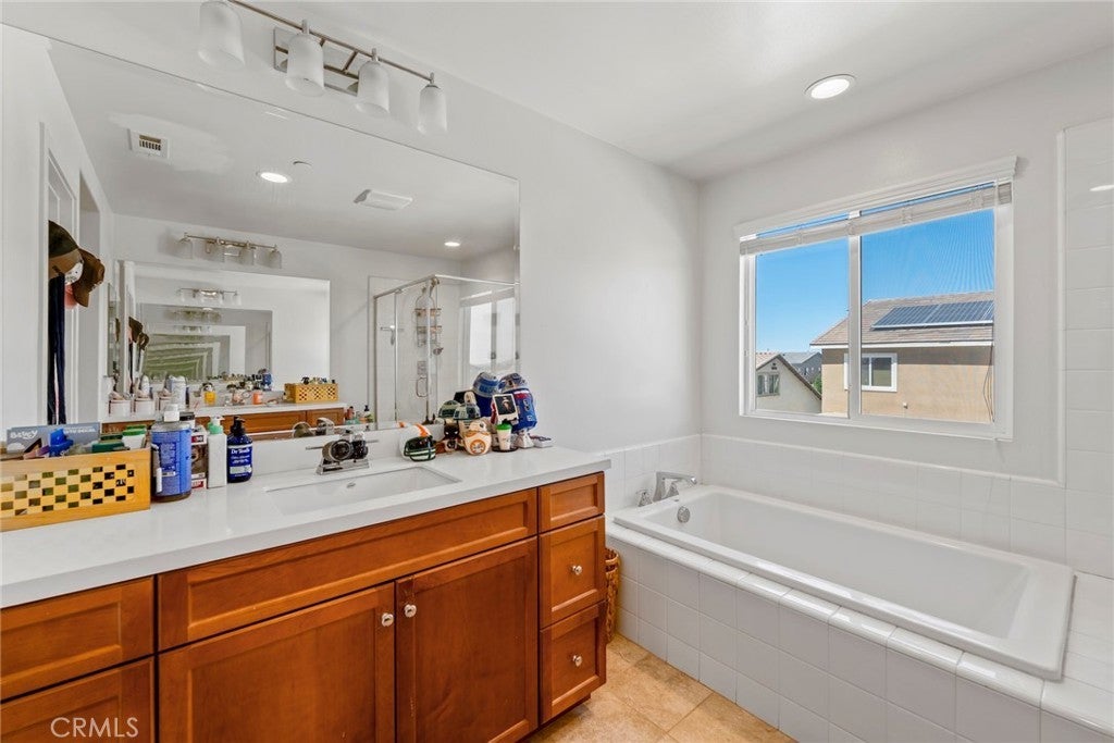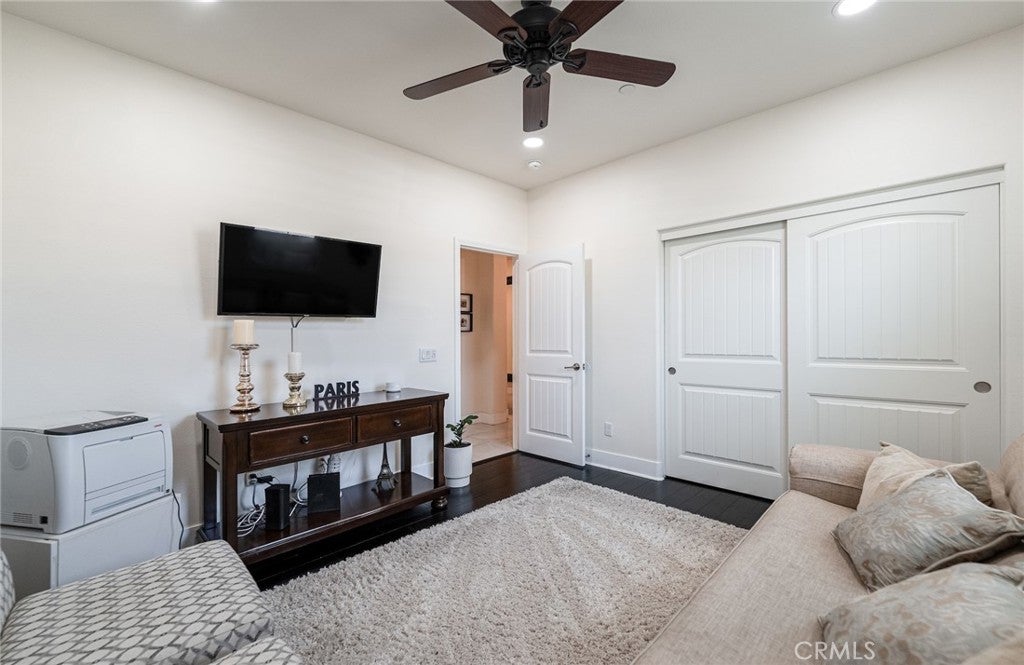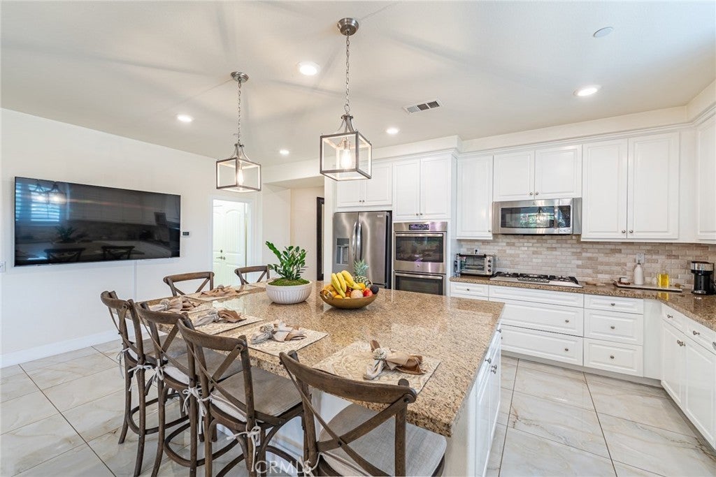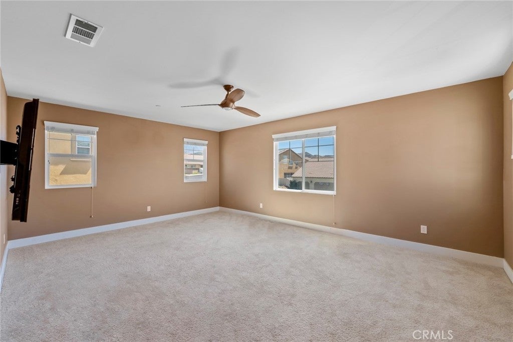This expansive two-story home offers approximately 3,753 square feet of thoughtfully designed living space, including 6 bedrooms and 4 full bathrooms, making it ideal for growing families or multi-generational living. The layout features a spacious living area, a formal dining room, and a gourmet kitchen complete with an oversized granite island, double ovens, walk-in pantry, and ample cabinetry. Throughout the home, you'll find elegant finishes like dark wood-style laminate flooring downstairs, plush carpeting upstairs, and granite countertops in kitchens and baths. In addition to having a gorgeous interior layout, by stepping outside you'll find a beautifully maintained backyard with a wraparound concrete patio, ideal for relaxing, hosting, or gardening. solar lease to be transfer to new buyer at close of escrow