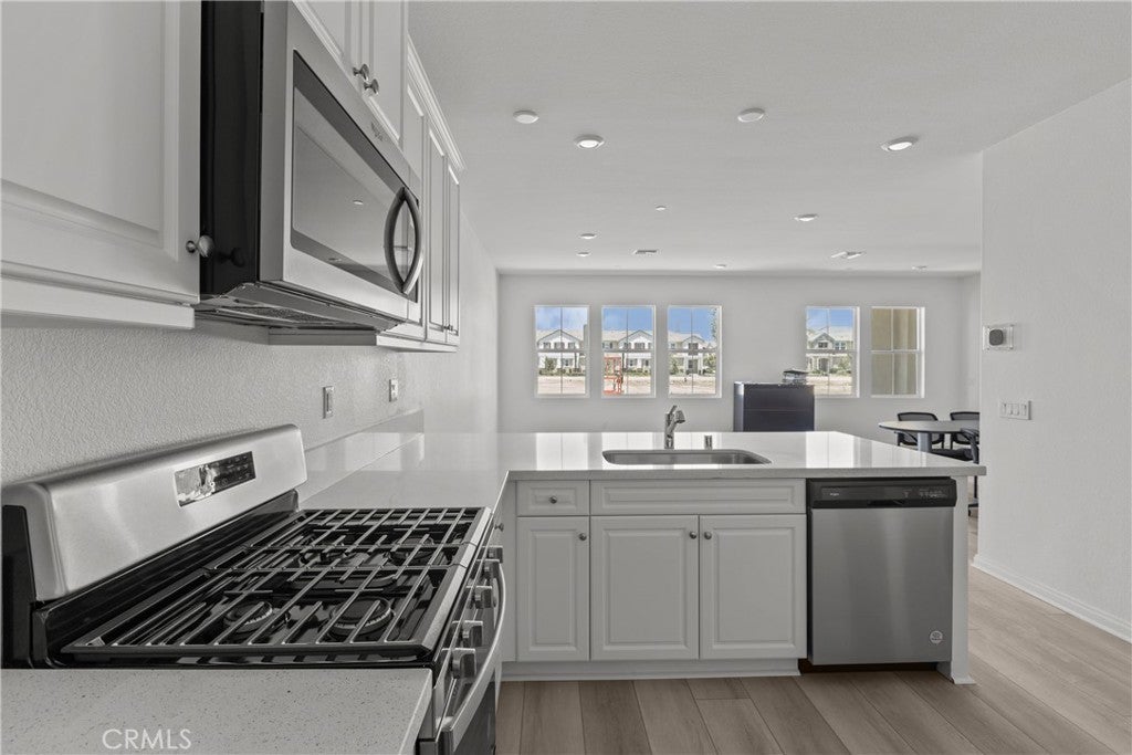 Belmont is a beautiful new condo resort-style community in the newer area of Ontario Ranch. This floor plan offers 1,880 sq/ft of open floor plan spread across 2 floors. Take note of the expansive 9-ft ceilings bringing a nice vaulted feel at the first floor when you walk in. This open floor plan features the living, dining and kitchen downstairs for maximum space in the living and dining areas. Laundry is also upstairs for convenience. Our homes offer brand-new stainless steel appliances including a slide in gas stove, dishwasher and microwave. Additionally, there is a powder room downstairs for convenience. The upstairs leads right into an open loft the family can enjoy and two secondary bedrooms nearby as well. Those two bedrooms share a large hallway bathroom that has a tub/shower combination. The spacious primary bedroom is a short walk away and has a large walk-in closet, adjoining bath with cultured marble counter tops, and dual sinks to round out a great primary bathroom . There is also a large balcony accessible from the loft for you to relax at after a long day. Each home is built with uncompromising energy efficiency in mind such as a tankless water heater, smart thermostat, dual-pane low E glass windows and so much more to help ensure uninterrupted comfort all year long. All that is complimented by a solar energy system as well to maximize savings. Community amenities include several parks, pool and spa, dog park, bbq areas and pickle ball court. Easy access to the I-15, I-10, and 60 Freeways nearby. You are also close to shopping at Costco®, 99 Ranch Market, Cloverdale Marketplace and Eastvale Gateway. Ontario International Airport and Ontario Mills Mall are also just a short drive away. Belmont is conveniently located just 2.5 miles away from the brand-new Park View elementary school. Photo is a rendering of the model. Solar Included!