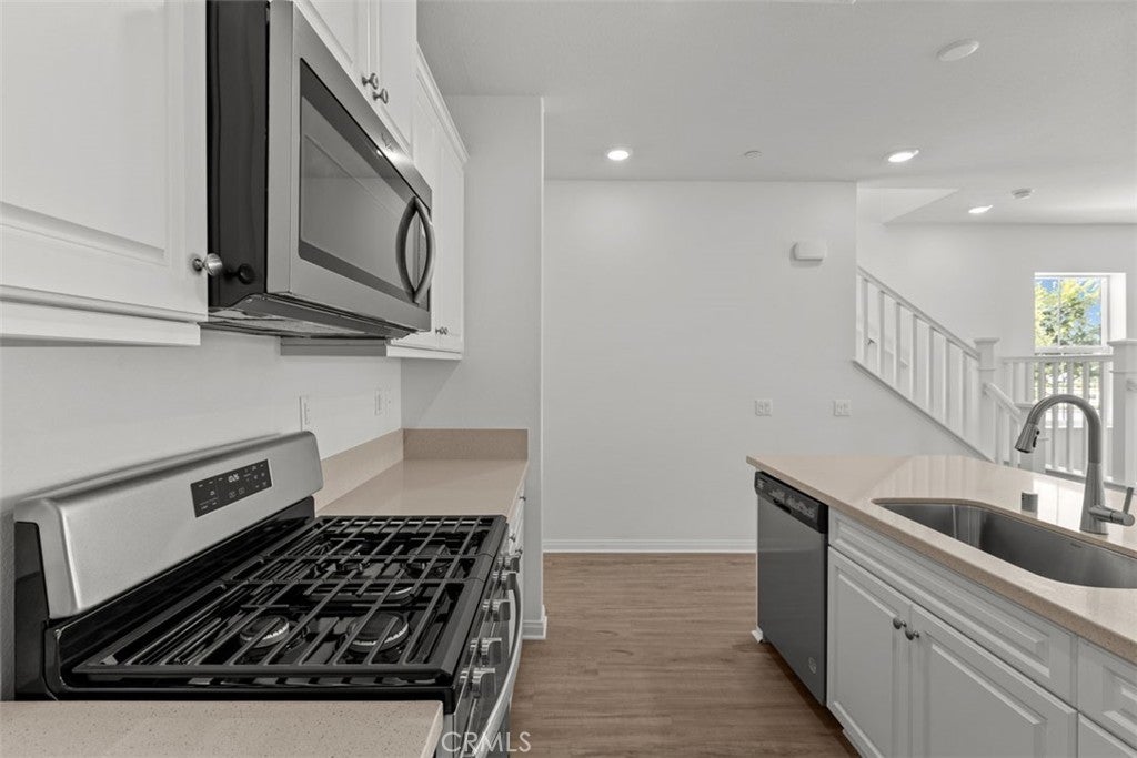 Belmont at Sunset Ranch is a beautiful resort-style community in the heart of Ontario Ranch. This floor plan offers 2,051 sq/ft of open floor plan spread across 2 floors. Take note of the expansive 9-ft ceilings bringing a nice vaulted feel at the first floor when you walk in. This open floor plan features the living, dining and kitchen downstairs. The stylish kitchen features white thermofoil cabinets, large kitchen island, walk in pantry, dining area, upgraded quartz counter tops and luxury vinyl plank flooring throughout the downstairs. Our homes offer brand-new Whirlpool® stainless steel appliances including a slide in gas stove, dishwasher and microwave. Additionally, the powder room and laundry room are downstairs. The upstairs leads right into an open loft the family can enjoy and two secondary bedrooms nearby. Those two bedrooms share a large hallway bathroom and has a tub/shower combination with double sinks. The spacious primary bedroom with a large walk-in closet, adjoining bath with cultured marble counter tops, dual sinks, an extended vanity with knee space and walk-in shower. There is also a private balcony from the primary bedroom for you to relax at after a long day at the office with the view of the Pool. Each home is built with uncompromising energy efficiency in mind such as a tankless water heater, smart thermostat, dual-pane low E glass windows and so much more to help ensure uninterrupted comfort all year long. All that is complemented by a solar energy system as well to maximize savings. Community amenities include two parks, pool and spa, dog park, and pickle ball courts. Easy access to the I-15, I-10, and 60 Freeways nearby. You are also close to shopping at Costco®, 99 Ranch Market, Cloverdale Marketplace and Eastvale Gateway. Ontario International Airport and Ontario Mills Mall are also just a short drive away. Belmont is conveniently located just 2.5 miles away from the brand-new Park View elementary school. Photo is a rendering of the model. Solar is included