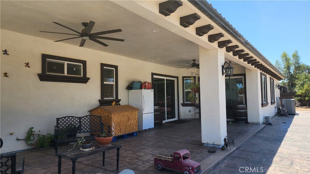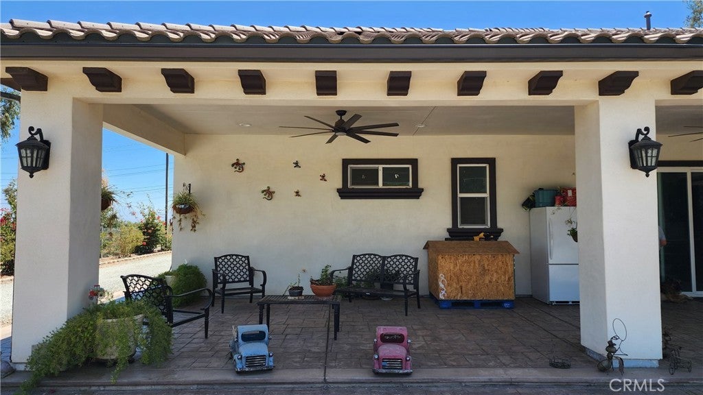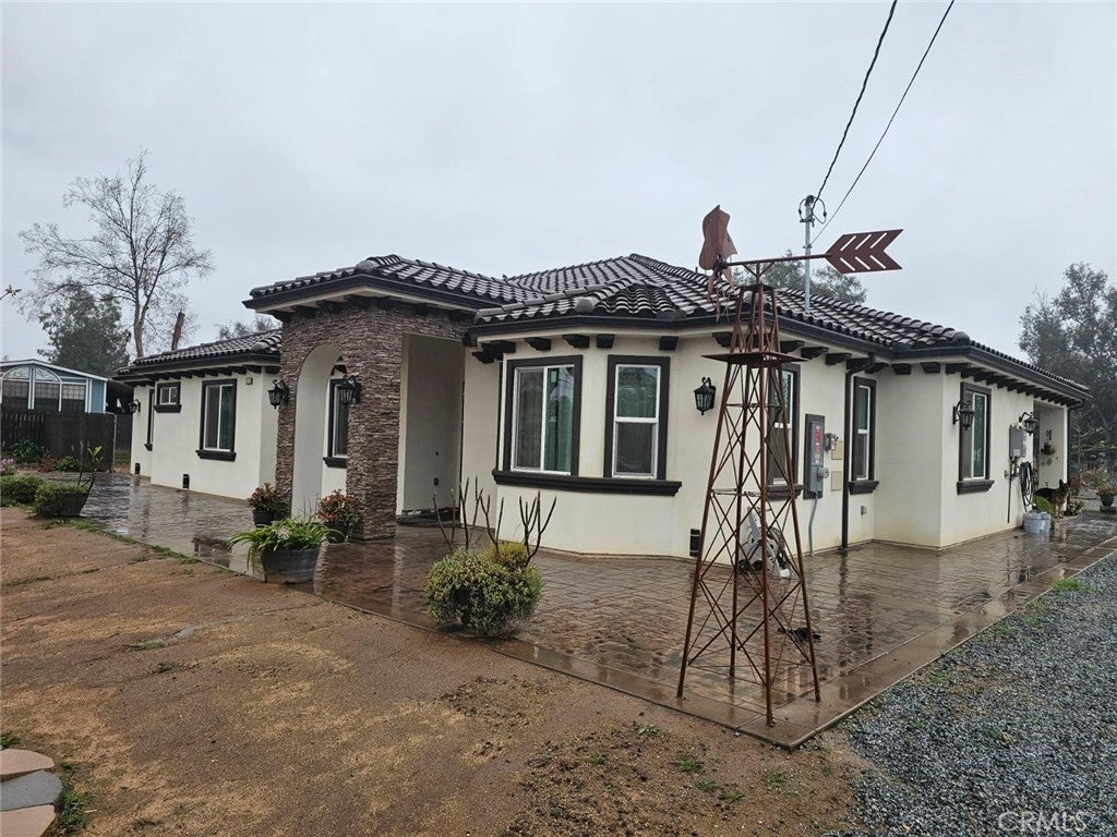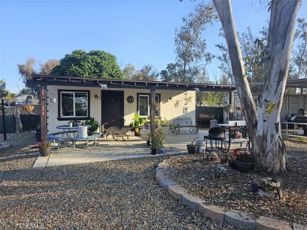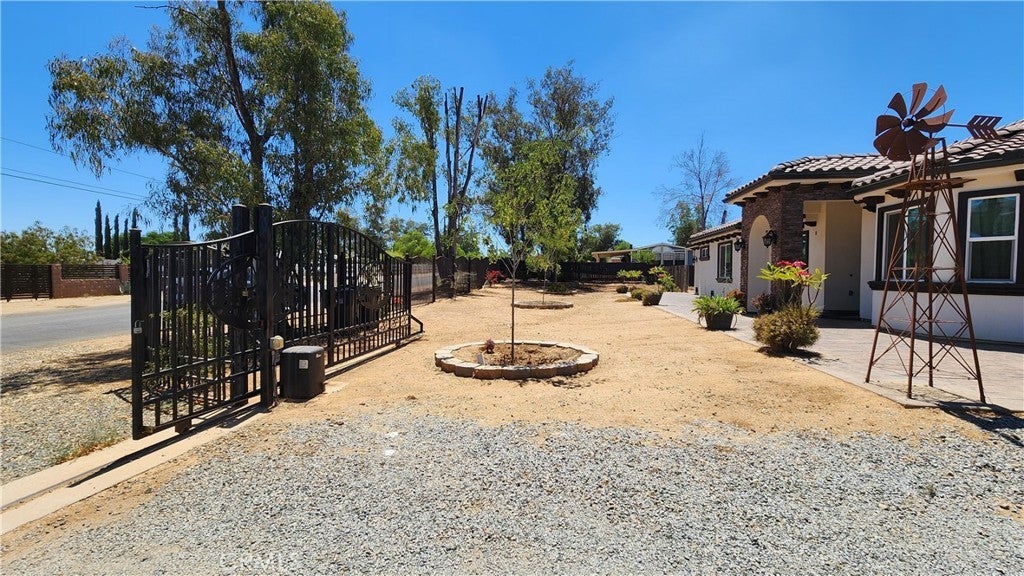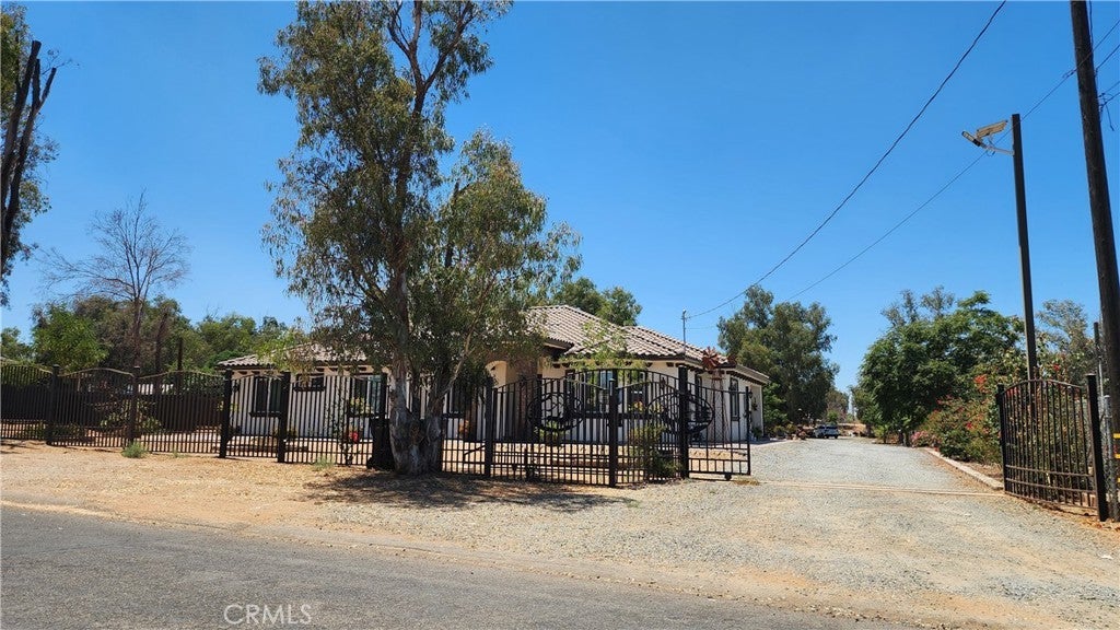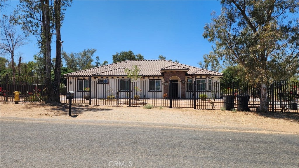For Sale. This home is almost new, was built in 2022. Beautiful rural setting with almost 1.5 acres of usable land. This home features 5 spacious bedrooms and 3 Full Bathrooms. 10 foot ceilings throughout the home. Huge main suite with a private office, large walk in closet and very elegant bathroom with dual showers and custom tile work and glass enclosures. The kitchen has lots of storage, custom cabinets with wine bottles storage, a center island with quartz countertops, built in microwave, you will love it. Open concept. Large Living Room and Family Room as well. Dining area. Large Pantry. Custom front iron door. Marble tile floors throughout most of the home and carpet in the bedrooms. There are 2 AC Units, 2 Water Heater units and even PAID OFF SOLAR panels to save hundreds on your electric bill. Many mature trees and plants throughout the yard and citrus grove with mix of trees. Front iron fence with a custom gate and automatic opener. Storage shed with covered patio. The container and covered carport in the back yard is excluded but negotiable. Lots of room to build a second home or ADU. Room for, trucks, trailers, RV, Boat, horses......make it yours. Come and take a look and see you in escrow.