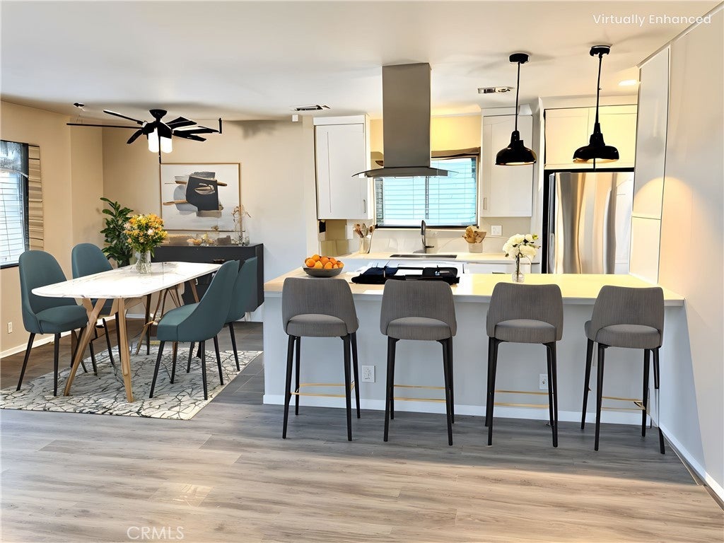• Interior FeaturesSeparate/Formal Dining Room, All Bedrooms Down, Breakfast Bar, Ceiling Fan(s), Eat-in Kitchen, Quartz Counters