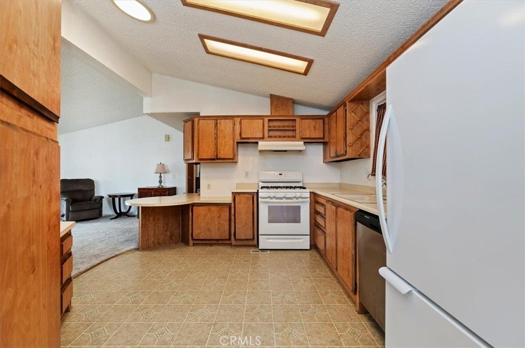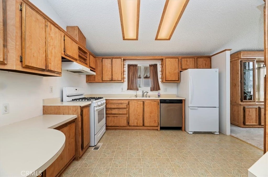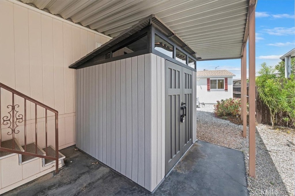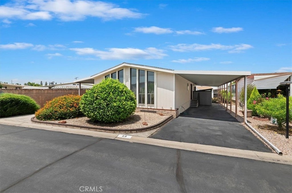55+ community welcome to this Charming well-maintained manufactured home offering 1,344 sq. ft. of Stylish living space. Showcasing exuberant lighting throughout, this 2-bedroom, 2-bath home features vaulted ceilings and expansive windows that fill the home with warmth and energy. Enjoy a bright open floor plan, a well-equipped kitchen with generous cabinetry, and a spacious dining area perfect for hosting. This home also features a detached casita which offers flexibility for a home office, studio or guess space. Outside you can relax under the gazebo-style patio cover, ideal for outdoor dining or peaceful morning. A covered carport, storage shed and low-maintenance landscaping add convenience to charm. Don’t miss this affordable and versatile property with excellent indoor and outdoor living with a community clubhouse, swimming pool and mailboxes are located within minutes of the resident.
