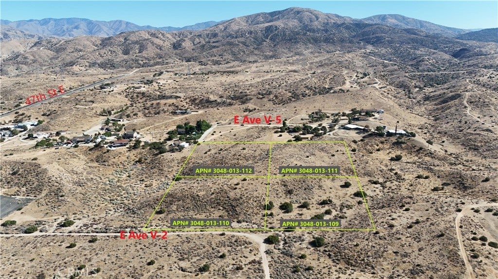 APN: 3048-013-109, 3048-013-111 Coordinates: 34.511806, -118.050694 2 parcels for sale in Palmdale, CA. This listing includes two parcels totaling at 5 acres. The properties are located just off of 47th St E and Barrel Springs Rd in Palmdale, CA. Great location near other homes and accessible via dirt road off of 47th St E. Parcels are all adjacent to each other APN# 3048-013-109, 3048-013-111
