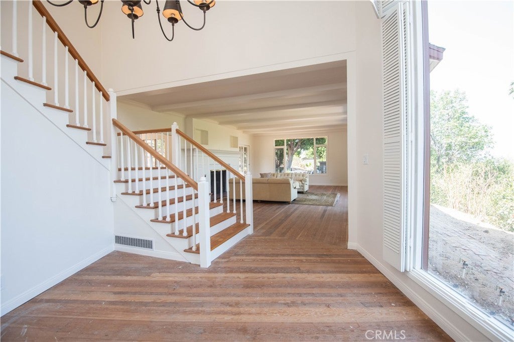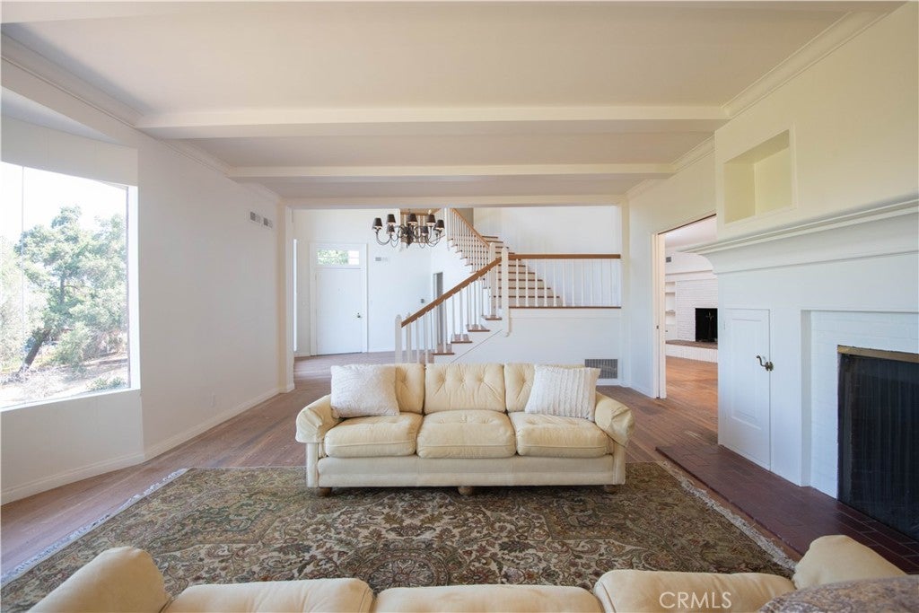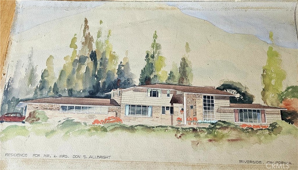 Don't miss this unique opportunity to own 1.77 acres in Knob Hill in the city of Riverside with a 3,310 sq ft home that was custom built in the 1940's; a charming, historically rich home on a large lot in Riverside. It combines traditional architectural details with updated amenities. Gated with a long, private driveway, this home features a grand entry foyer; showcasing a large picture window with views, a traditional staircase, and a dramatic chandelier The formal living room boasts wood flooring, a beamed ceiling, a wood-burning fireplace, and a panoramic bowed window with paneled glass. A slump stone fireplace adds character to the family room, complemented by an adjacent sunny patio room with flagstone flooring and ample windows. The Great Room: Versatile in nature, this room features hardwood floors and a statement chandelier, historically used as a formal dining room with double doors leading to a sunroom. The kitchen has new laminate flooring, ample cabinetry, and granite counters, and includes a charming breakfast room. A brick hearth serves as a focal point, providing warmth and ambiance plus a walk-in pantry and a basement Around the corner from the kitchen, a Butler's staircase offers a secondary access point to the upper level. Indoor laundry room with deep-well basin and a guest bath. Two bedrooms are situated on the main floor, each with its own private bathroom. One of these bedrooms offers double closets and a walk-in wardrobe. The second level features a well-proportioned secondary bedroom with shutters and built-in features, and a full bathroom. The primary bedroom includes an ensuite bath, a walk-in closet and a separate sitting room or storage area. The property features multiple patio areas perfect for entertaining and garden parties, along with a terraced garden and loads of acreage to do as you please. This custom-built Riverside home offers a blend of vintage charm and modern conveniences on a large, secluded lot. This home has been owned by the same family since it was built in 1947. Come take a look at this piece of Riverside history.
