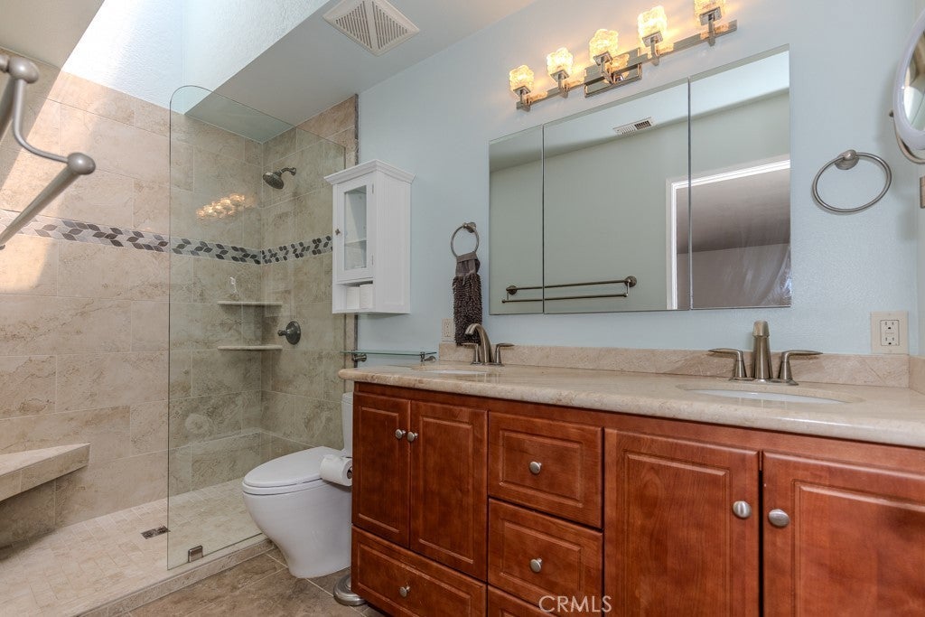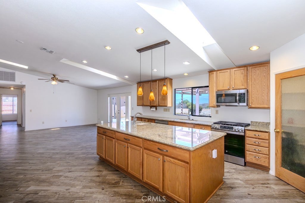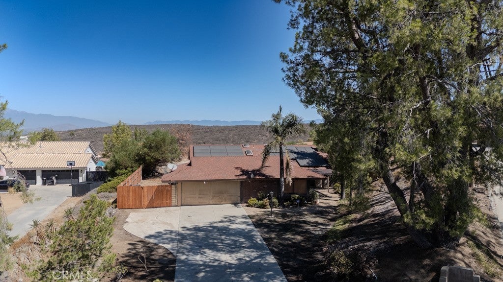Welcome to 16186 Pick PL, in the highly desirable Woodcrest community in Riverside. Nestled in a serene and spacious location, this home offers stunning views of the city lights and mountain views. Perched on a sprawling 1.18 acres, this property is 2929 Bldg Sq Ft, 3 bed/2 Full bathroom, a spacious bonus room ideal for a home office or gym. This house contains 4 A/C zones, so you don't have to run the A/C in the entire home all at once. Washer and dryer are 1 yr old and 5 burner gas range with no preheat air fryer and convection oven. Remodeled kitchen and bathrooms. The inviting living and dining area includes a double-sided fireplace, creating warmth and charm. This beautiful home has two sheds, RV parking, and a new side patio with an additional patio. All have been permitted except side patio. New ducting and heater put in in 2020. Hot water circulation pump, which gives you fast hot water. Heat pump works for A/C as well. New vinyl flooring in all bedrooms and tiles in all others. New paint and new car garage door. Property comes with panels and buyer to assume lease. There are two separate panel contracts, one for $103.06 per month and the other is per KWH. The current rate is $.0256/kwh and produces anywhere from 400 kwh to 900 kwh per month. The billing may vary from $150 to $250 per month. Seller has not paid an Edison bill since May 2022 and currently has a $500 credit. Property is septic and had new leach lines in 2016. Cameras do not belong with the purchase price. So much more, a must see home!!