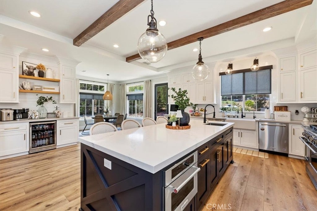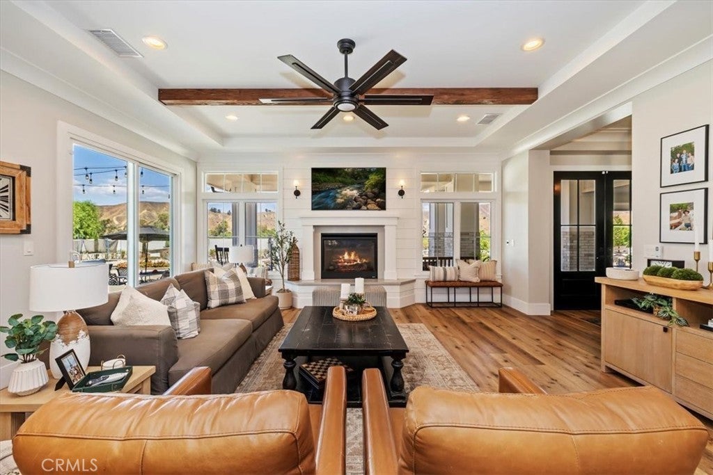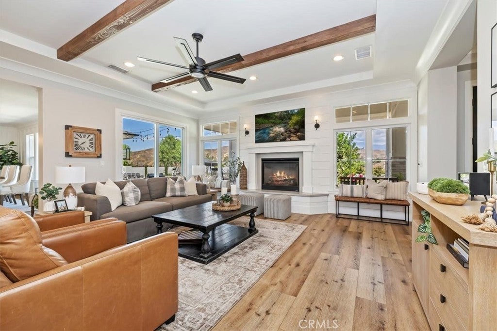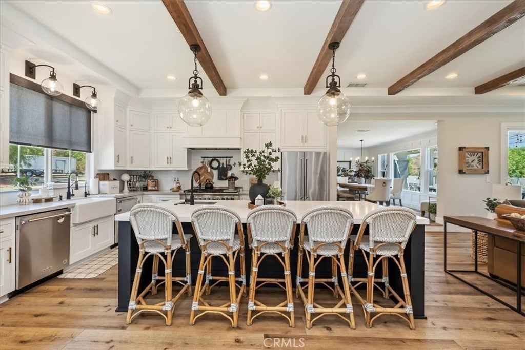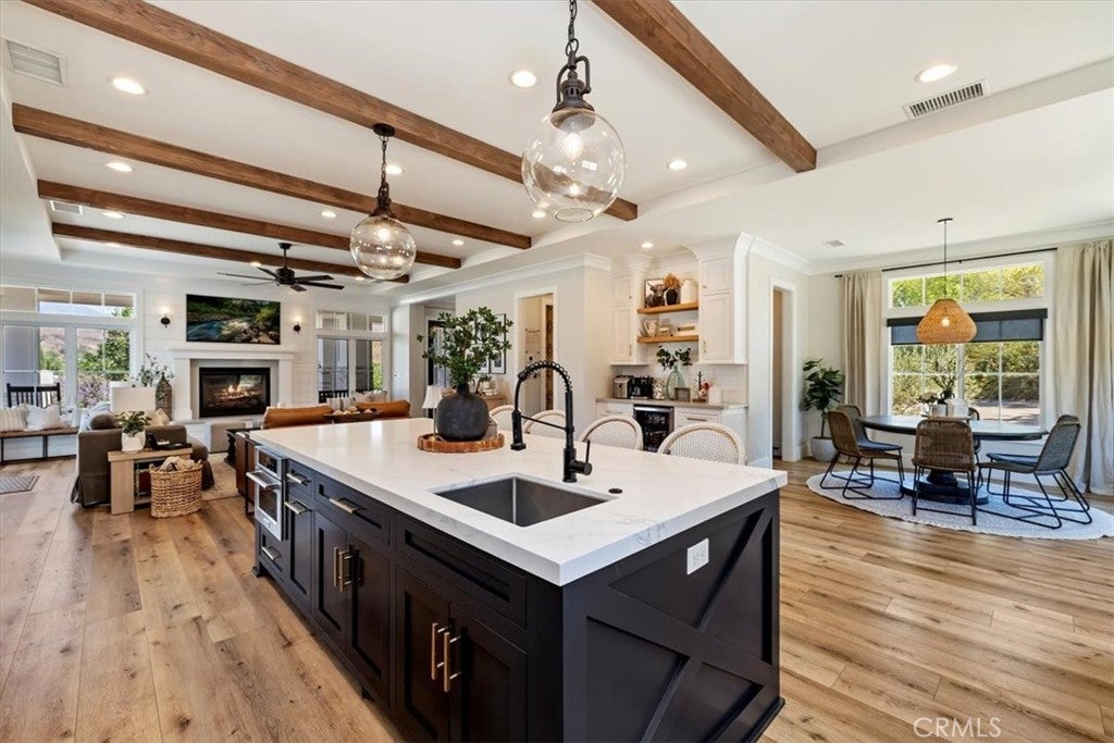 • Interior FeaturesBreakfast Area, Ceiling Fan(s), Separate/Formal Dining Room, High Ceilings, Open Floorplan, Pantry, Quartz Counters, All Bedrooms Down, Beamed Ceilings, Breakfast Bar, Built-in Features, Coffered Ceiling(s), Crown Molding, Dry Bar, Recessed Lighting, Tray Ceiling(s), Wired for Sound