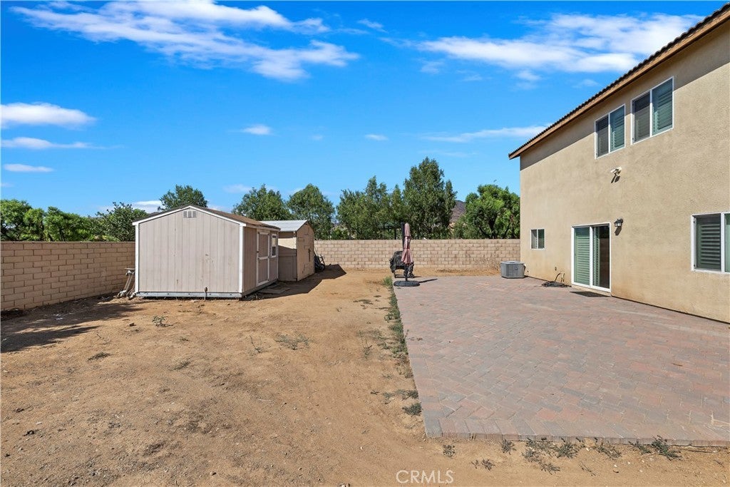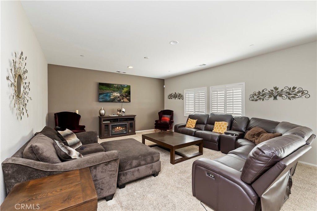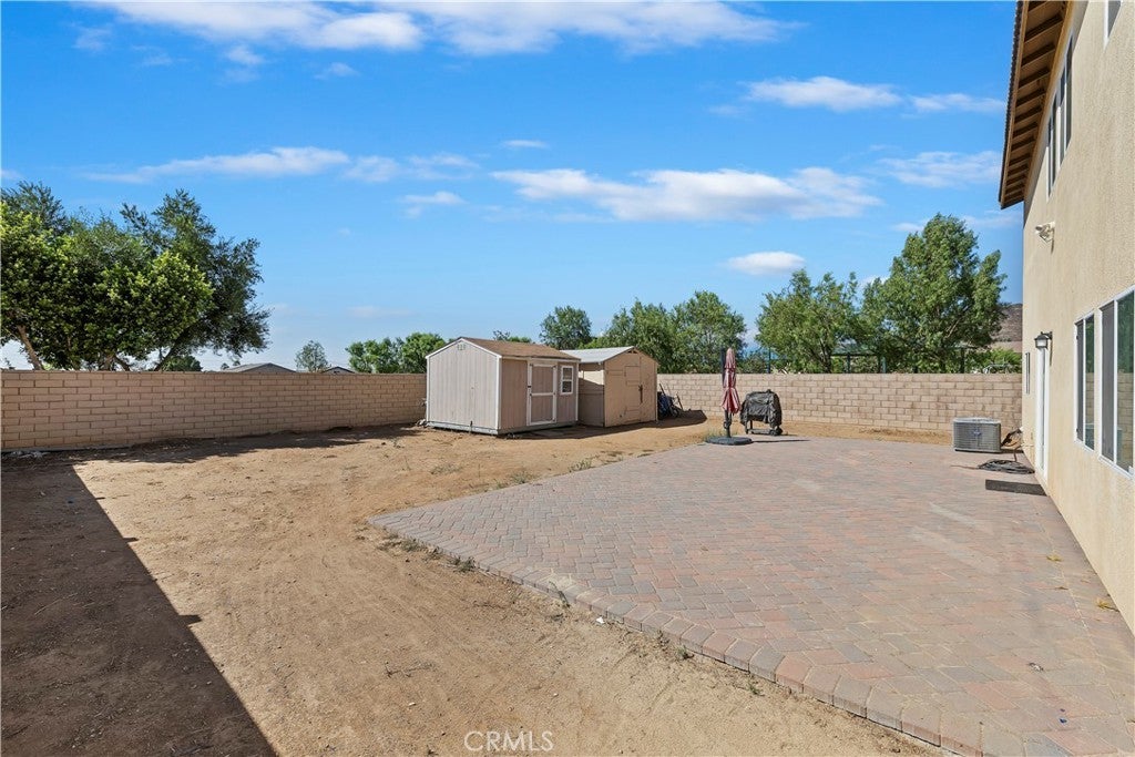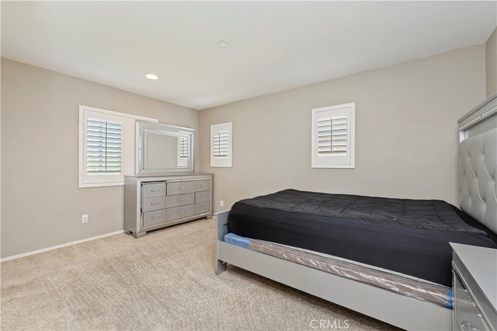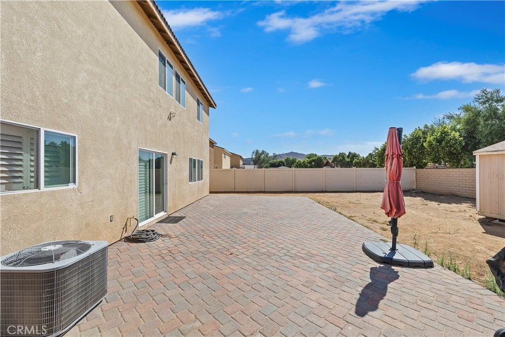 Welcome to this spacious 5-bedroom, 2.5-bath home. The interior features designer custom paint, plantation shutters, and recessed lighting throughout. The main floor offers 9-foot ceilings, an oversized family room, open kitchen with dining area, and a private bedroom with full bath. Upstairs includes a versatile loft, laundry room, and three secondary bedrooms—two with walk-in closets. The primary suite boasts a large walk-in closet, dual sinks, and a relaxing retreat atmosphere. The backyard is complete with a paver patio, block wall enclosure, and unobstructed mountain views with no neighbors on one side. Additional builder upgrades include ceiling fan kits, sprinkler systems, a fumigation system, and a tankless water heater. Conveniently located near new parks, schools, and freeway access and no HOA.