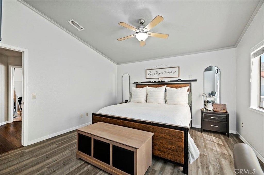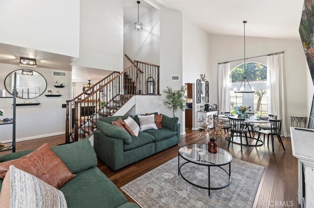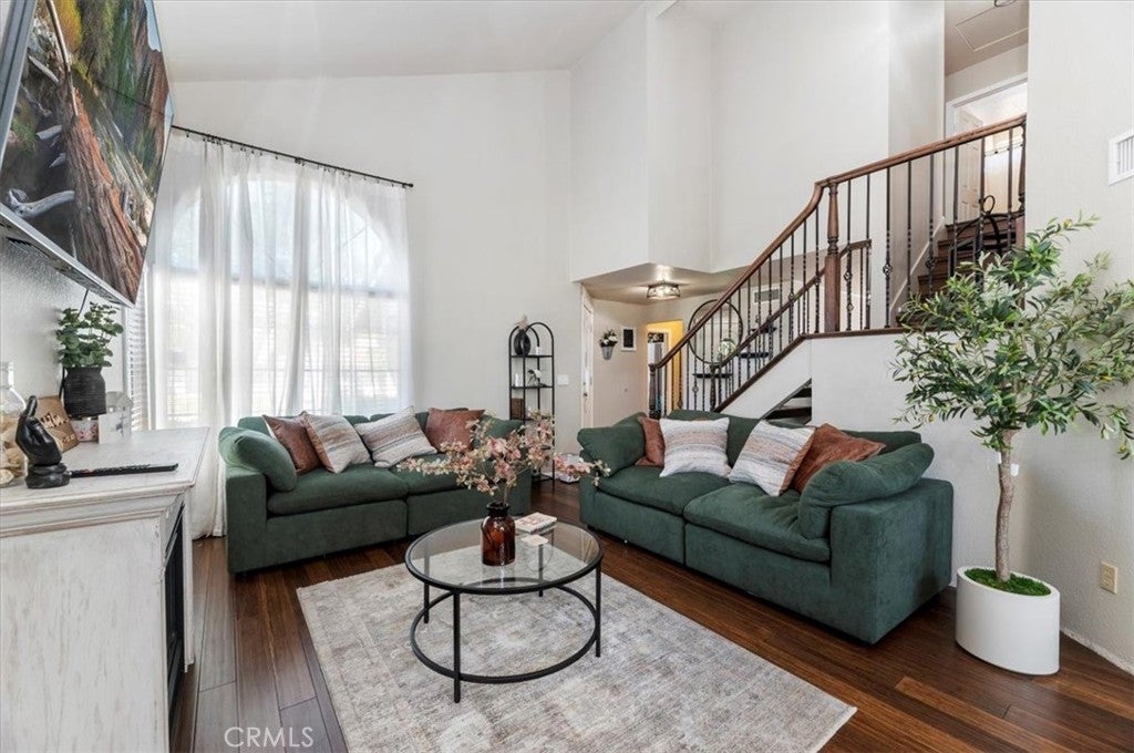 Welcome to your new home! Stunning 4-Bed, 3-Bath, 2-Story Home in Sunnymead Ranch! This beautifully upgraded home features 4 large bedrooms and 3 full baths. With one bedroom and one bathroom on the first floor. The home also has bamboo wood flooring, a custom wrought-iron staircase, a cozy fireplace, an upgraded kitchen and french doors. The updated kitchen offers granite countertops, stainless steel appliances, custom lighting, and a large bay window. Spacious bedrooms include oversized closets, and the luxurious primary suite has a private balcony, dual sinks, and a walk-in closet. Enjoy the beautifully lighted backyard with a fire pit and paved side area. Freshly painted, newly recovered roof, and a 3-car garage with 220V outlet & storage loft. Located in the sought-after Sunnymead Ranch community in Moreno Valley, featuring walking paths, lake, clubhouse, gym, pool, spa, tennis, pickleball, and more!