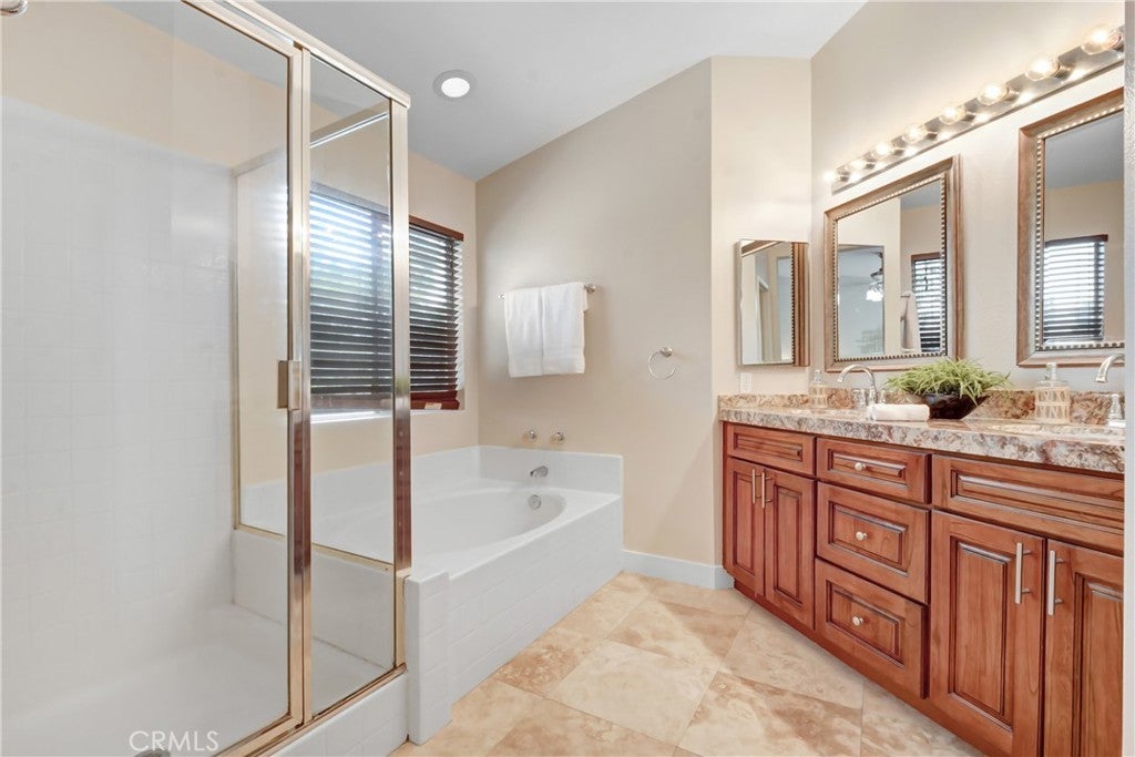 Stunning Two-Story Home in a Highly Desirable Neighborhood This beautifully maintained home offers a spacious and inviting layout, perfect for comfortable living and entertaining. The main floor features a formal living and dining room, soaring high ceilings, along with a charming remodeled kitchen that seamlessly connects to the family room, complete with a cozy fireplace. A versatile bedroom and a full bathroom with a shower provide added convenience on the first floor. Upstairs, you’ll find three additional bedrooms and a generous master suite. The master bedroom boasts ample space, a private en-suite with a separate shower and soaking tub and serene backyard views. Step outside to your private area with patio cover perfect for relaxing and entertaining. The property also features a three-car garage. Nestled in a prime location close to top-rated schools, scenic walking trails, shopping, and major freeways, this home offers breathtaking mountain views and is truly move-in ready. Make this beautiful home yours and enjoy the summer in style! NO HOA!