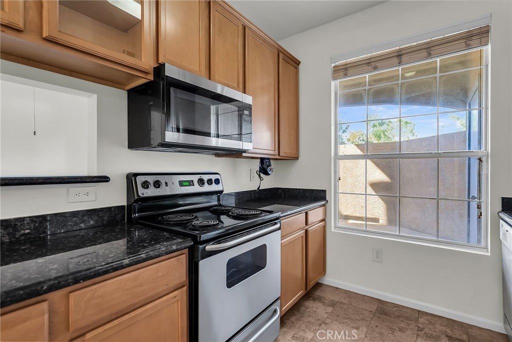 Canyon Crest – This first-floor condo in the desirable Sonata community is move-in ready with fresh paint and new carpet. Just steps from the community greenbelt, the home welcomes you into a bright and airy living room that opens to a private, gated courtyard patio. The upgraded galley-style kitchen features granite countertops, abundant cabinetry, stainless steel appliances, and travertine flooring, with an adjacent dining nook that completes the main living area.The spacious primary bedroom is filled with natural light and offers two generously proportioned closets. A centrally located full bathroom includes travertine flooring, granite countertops, and a refinished tub enclosure. Community amenities include a swimming pool, walking paths, greenbelts, and a clubhouse. Enjoy the convenience of being minutes from Canyon Crest Town Center, the University of California, Riverside, Sycamore Canyon Wilderness Park, and easy access to major freeways.