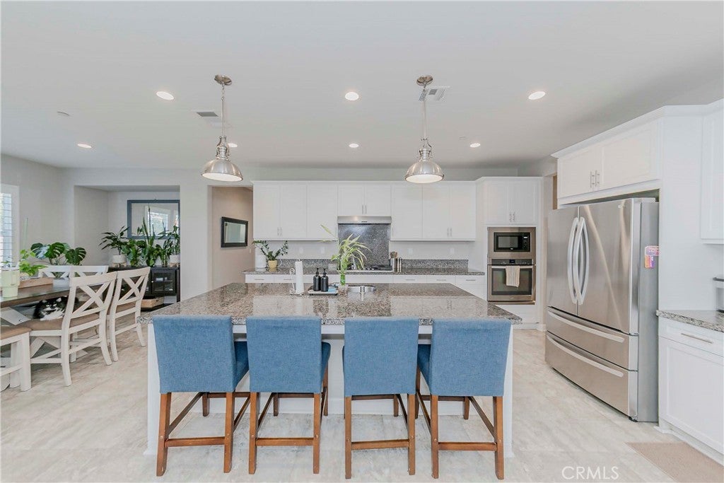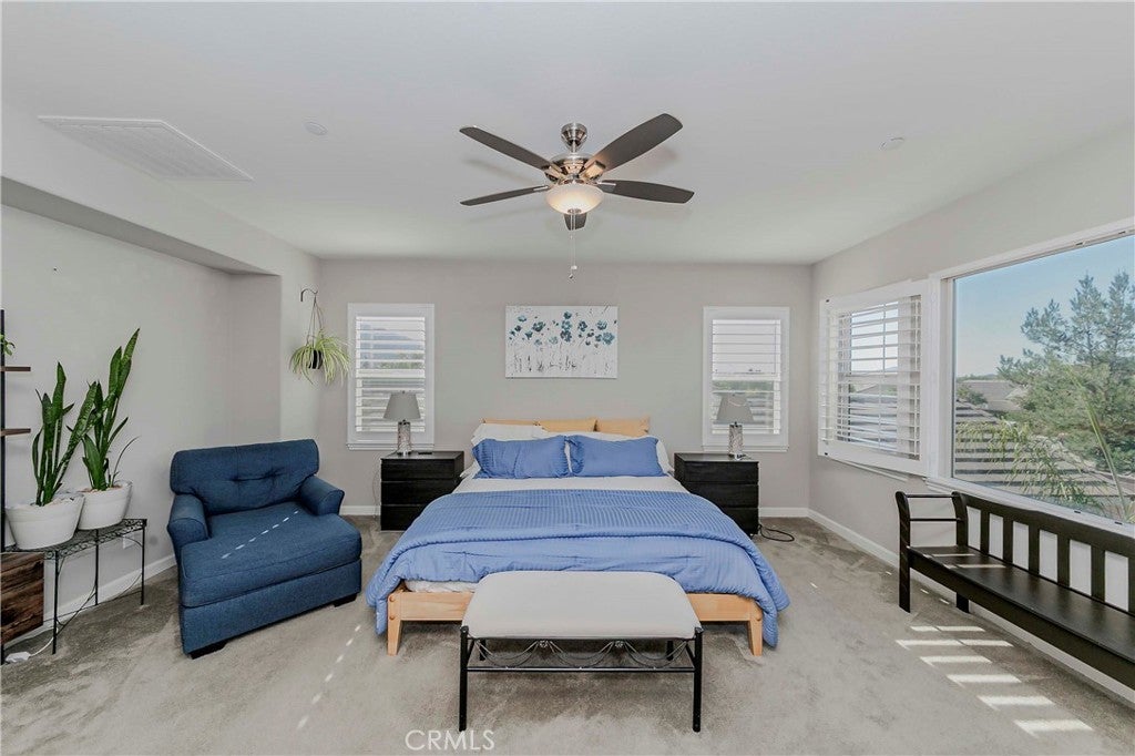 Welcome to your dream home in the highly sought-after Heritage Lake community of Menifee. This beautifully upgraded home sits on one of the largest lots in the neighborhood, offering unmatched space and privacy. Step inside a grand formal entry with soaring two-story ceilings and abundant natural light. The open-concept floor plan creates a warm and inviting atmosphere, leading you to the heart of the home: a stunning gourmet kitchen. This chef’s dream features high-end stainless-steel appliances, a large center island, double ovens, a built-in range, and a walk-in pantry. The space flows seamlessly into the dining area and family room, making it perfect for both entertaining and everyday living. A thoughtfully designed floor plan includes a full bedroom and bathroom on the main level, ideal for guests or multi-generational living. Upstairs, you'll find a spacious loft, Four additional bedrooms, a full bathroom, and a convenient laundry room. The large primary suite is your private retreat, offering serene mountain views and a spa-inspired bathroom with a walk-in shower, soaking tub, dual sinks, and a walk-in closet. The backyard is an entertainer’s paradise, ready for you to create your own oasis. It features stamped concrete, and a California patio cover with ceiling fans. With so much space, you have endless possibilities—add a pool, outdoor kitchen, sports court, or anything else you can imagine. This home also includes a Quiet-Cool attic fan and a direct-access four-car garage. Enjoy the resort-style amenities of Heritage Lake, which include a private 25-acre lake, two Jr. Olympic-sized pools, a splash pad, playgrounds, tennis/pickleball and basketball courts, and a fitness trail. Located just 14 miles from the scenic Temecula Wine Country, offering easy access to world-class wineries and picturesque vineyard views. You'll also love the close proximity to shopping, dining, schools, and easy freeway access. This home isn't just a place to live; it's a lifestyle.
