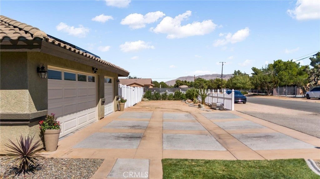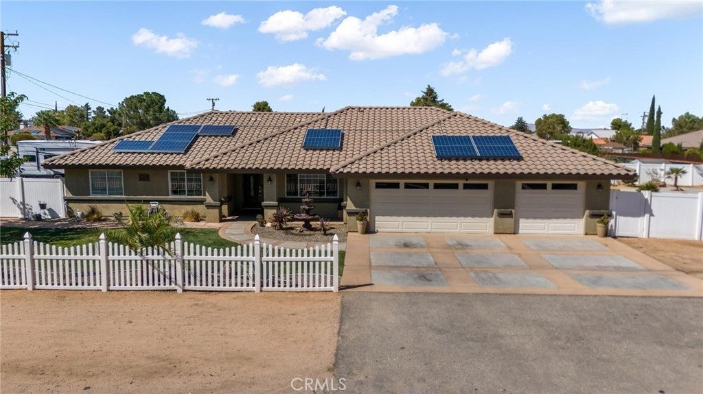 Stunning 4-bedroom, 2.5-bathroom corner lot home with solar to help keep summer utility bills low. The split floor plan offers a spacious master suite on one side of the home near the laundry room and kitchen, while the additional bedrooms are located on the opposite wing for privacy and comfort. Inside you’ll find vaulted ceilings, high-end finishes, laminate flooring, dual pane windows, upgraded bathrooms, a walk-in pantry, and a beautiful fireplace that adds warmth and style to the living area. The master suite is a true retreat with a double sink vanity, jetted tub, and tile shower. Outside, enjoy a white picket fence with real grass in the front yard, a rare find in the desert, plus double RV access, an oversized 3-car garage, and a fully fenced backyard with upgraded vinyl fencing and an above-ground spa perfect for relaxing under the stars. This home is turnkey, offers everything you’ve been searching for, with low property taxes and no HOA this one will not last long—contact us today to schedule a private showing!