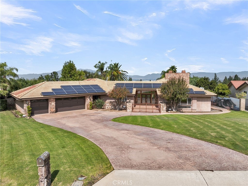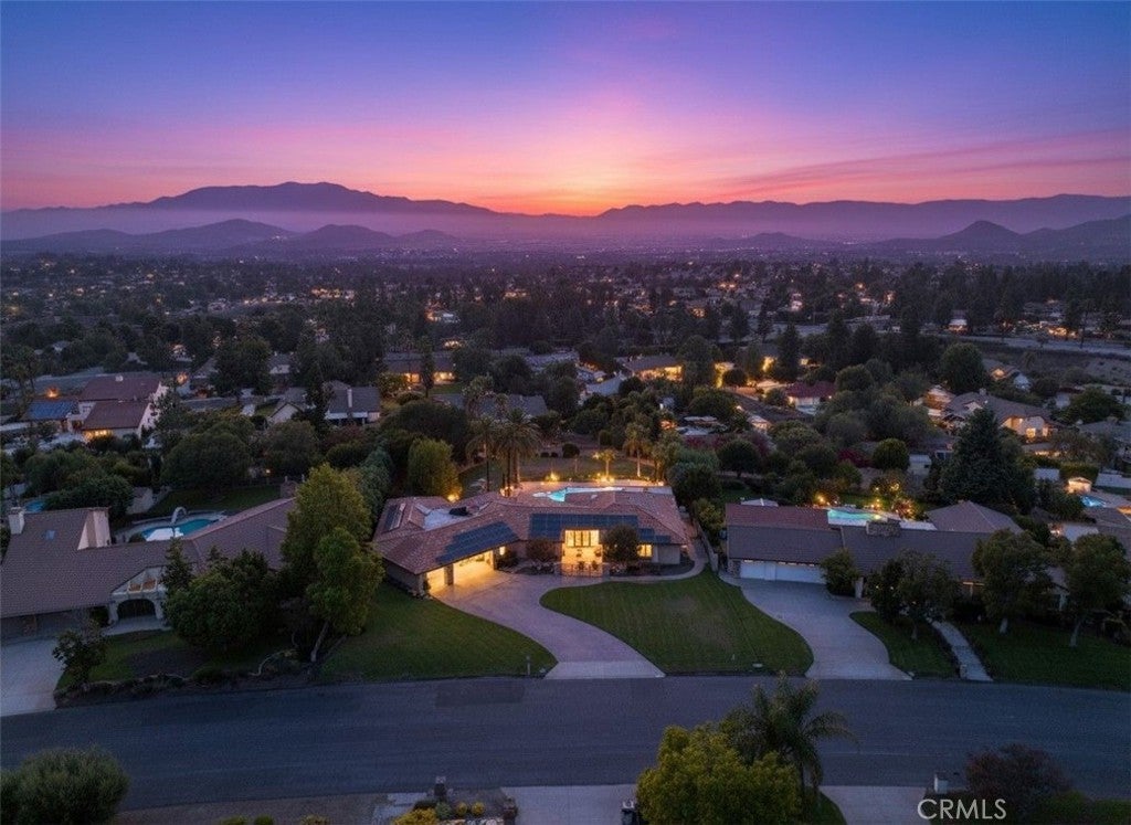 Sited on an elevated lot in Hillcrest, this sprawling single-story residence captures panoramic views over Downtown Riverside and the surrounding mountains, while offering a rare combination of privacy and open space. A stained and stamped driveway, flanked by mature landscaping, descends to a gated front courtyard. Inside, spacious living areas are accented by arched entryways, two stone fireplaces, and rich finishes. Large picture windows are thoughtfully placed, allowing the views to be omnipresent throughout the larger balance of the home. The open kitchen serves as the heart of the home, featuring granite countertops, a center island with gas cooktop, custom cabinetry, breakfast bar, and a dining niche. From here, expansive windows overlook the resort-style backyard, sweeping views, and mature landscape. The floorplan unfolds down a central hallway, flowing seamlessly between formal and informal spaces. Lovingly cared for, and thoughtfully enhanced, by the same owners for the past 40 years, this property reflects a sincere pride of ownership. The primary suite is a true retreat, highlighted by a uniquely spacious dressing room with built-in custom cabinetry and organizers, vanity station, and a center island of large drawers. Additional bedrooms and flex spaces provide versatile options for guests, a home office, or multi-generational living. Outdoors, a sparkling pool and spa take full advantage of the elevated vantage point, surrounded by manicured grounds designed for relaxation and entertaining. The raised spa is centrally located closer to the residence, both enhancing the views and integrating it into the social gathering areas for a seamless entertainment space. Just off the pool deck, an attached pool house offers a convenient ¾ bath for guests. A ribbon of lawn cascades down to the lower tier of the yard and connects with mature trees and bushes, completing the lot. Other notable features include an oversized 3-car garage, paid solar power system, and a generous .71 acre lot that feels tucked away yet is near local amenities, freeway access, University California at Riverside, and Downtown.