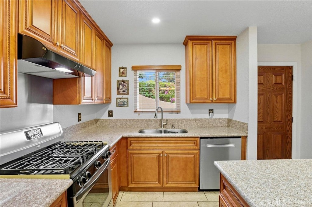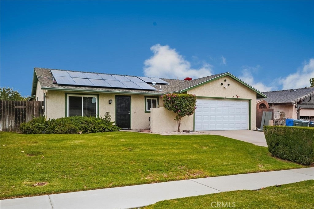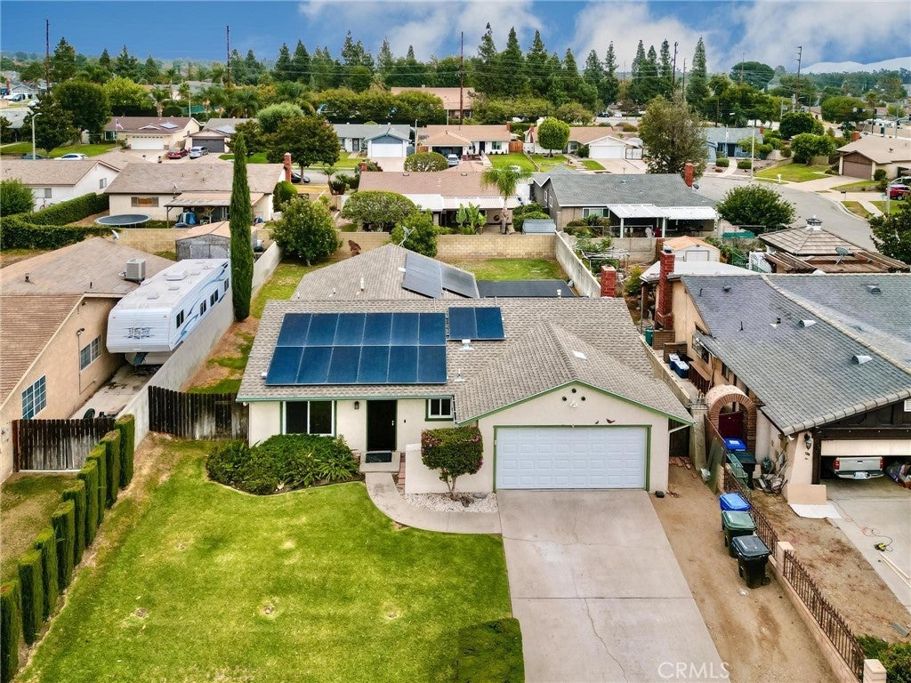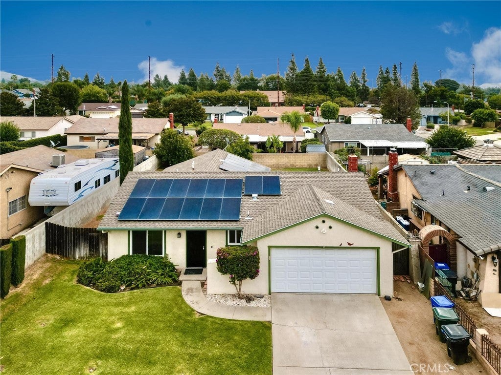 Welcome to this beautifully updated 3-bed, 2-bath home located in a desirable Rancho Cucamonga neighborhood. The open-concept kitchen features tile flooring, recessed lighting, a spacious island perfect for meal prep or casual dining, and ample cabinet space. All three bedrooms are comfortably sized, offering flexibility for family, guests, or a home office. The primary bedroom includes an en suite bathroom for added convenience. The two updated bathrooms provide a clean and modern look, with quality finishes throughout. Step outside to enjoy the spacious backyard with lush green grass—perfect for entertaining, gardening, or relaxing. The front yard is equally inviting with well-maintained grass and a cement driveway offering plenty of parking space. This home also comes installed with 32 owned solar panels and solar is PAID OFF, providing significant energy savings and long-term value. Property was remodeled in 2018, upgrades to the bathrooms, kitchen, floors, new roof, and solar panels. Don’t miss your chance to own this move-in ready home in Rancho Cucamonga!