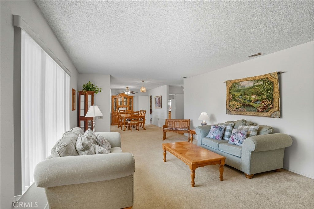 This Presley built home is an attractive, low maintenance single-story home in a 55+ community. This 3 bedroom 2 bath home is designed for comfortable senior living, with an emphasis on accessibility and a vibrant, amenity-rich lifestyle. A flowing, open layout is designed for effortless entertaining and everyday living. Large vinyl dual pane windows create a bright, airy, and inviting atmosphere. A large living room and dining area, located off the main entrance, serve as a central gathering point. Natural light floods the space, and the family room opens directly to the outdoor patio. Situated on a premium lot, this home offers private, unobstructed views of surrounding open space and landscaping. The home includes a main primary suite and two additional bedrooms. The primary bedroom is a serene retreat with an full bathroom. One of the secondary bedrooms may also serve as a den or office. The Sun City Civic Association has a central clubhouse which acts as a social hub for community events, and various clubs or hobbies. 2 pools in relax in. A packed calendar of activities, events, and special interest clubs ensures plenty of opportunities to socialize and stay engaged with neighbors.