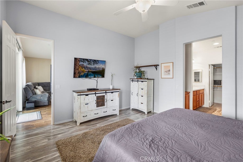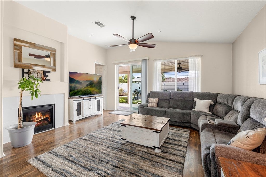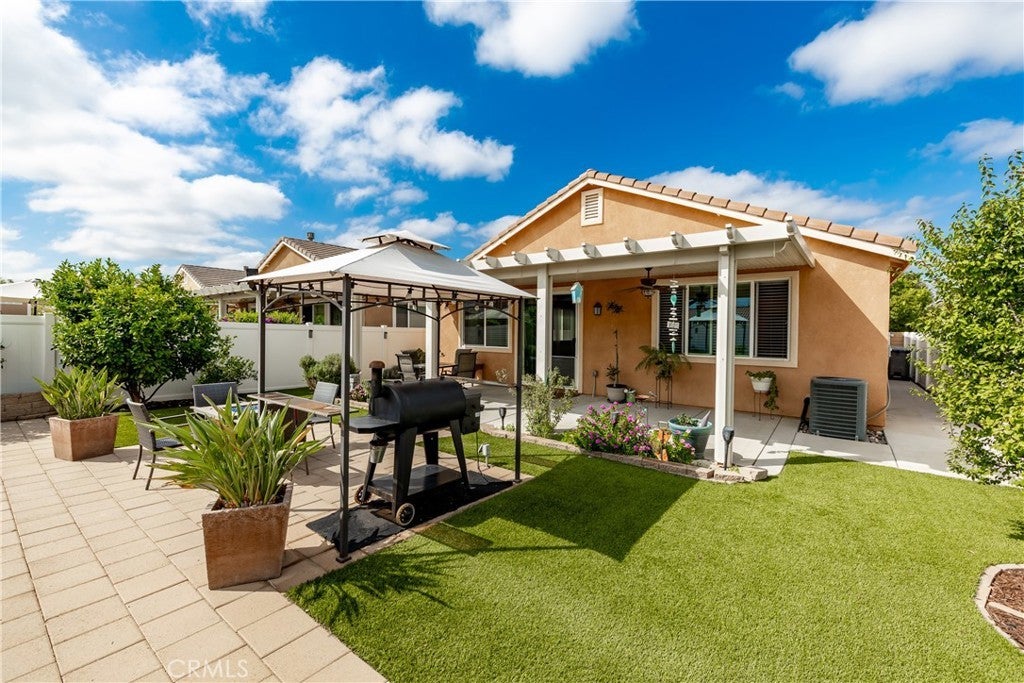Beautiful 3-Bed, 2-Bath Home in Premier 55+ Gated Community. Experience comfort, convenience, and energy efficiency in this meticulously maintained home nestled in a highly desirable community. With a light, airy open floor plan, this home offers the perfect blend of functionality and modern living. The spacious primary suite includes an en suite bathroom with dual sinks, a large walk-in shower, and generous closet space. Two additional bedrooms provide flexibility for guests, hobbies, or a home office. At the heart of the home, the open concept living and dining areas feature an inviting electric fireplace, creating a warm ambiance. The well-appointed laundry room includes a sink and built-in shelving for added storage and convenience. What sets this home apart is its commitment to energy independence—equipped with a solar system and a Tesla Powerwall battery, you'll enjoy lower utility bills and seamless backup power during outages. Step outside to your private backyard oasis, complete with turf landscaping, fruit trees as well as grapevine and covered patio, with dual ceiling fans—a perfect setting for outdoor relaxation or entertaining. Additional features include a 2-car garage and access to top-tier community amenities, including a resort-style pool, spa, and fitness center. Don’t miss your chance to own this turnkey, energy-smart home in one of the area’s most sought-after active adult communities!