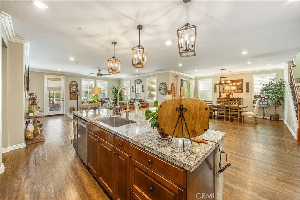 Experience panoramic canyon views in this beautifully upgraded home located in the Citrus Heights neighborhood. This spacious residence features 5 bedrooms and 3 bathrooms, including a downstairs bedroom and bathroom with a shower —ideal for guests or multigenerational living. A separate den on the main level offers flexibility as a home office or potential 6th bedroom. The open-concept layout showcases a gourmet kitchen with granite counters, rich cabinetry, stainless steel appliances, a wine cooler, and a center island that flows seamlessly into the formal dining area and family room with a cozy fireplace—perfect for entertaining. Upstairs, you’ll find four additional bedrooms, a loft, and a convenient laundry room with a sink. The luxurious primary suite offers a true private retreat with an adjoining flex space—ideal for a lounge, office, or reading nook—and a spa-inspired bath featuring dual vanities, a built-in vanity nook, soaking tub, separate shower, and a spacious walk-in closet. Step outside to your private backyard oasis featuring a sparkling pool and spa, a covered patio with a built-in TV and fireplace, and a built-in BBQ island—perfect for relaxing or hosting guests. Additional highlights include a gated side yard with RV parking, an oversized driveway, lush landscaping, a whole house fan and a paid-off water softening system. Community amenities include multiple parks and scenic walking trails. This home offers the perfect blend of luxury, comfort, and natural beauty.