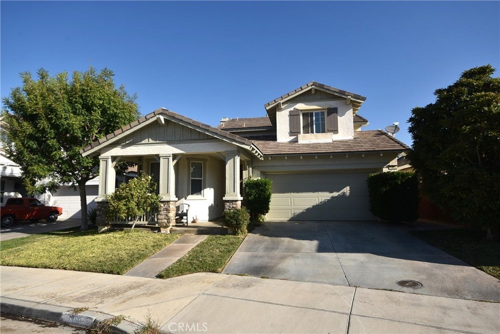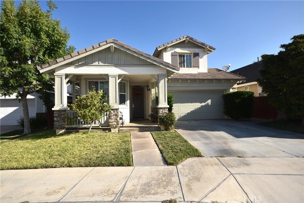 Another home for sale at village Of Avalon Community, green belt right behind with incredible vies, two levels, single door entry, well maintained, this property looks like a model home, super clean, home future's as follow: one bedroom one full bath down stairs and three bedrooms on the upper level two full baths, formal entry, living area, formal dinning, open floor plan, family room blinds through out, double panel windows, gourmet kitchen with litchen island, granite countertops, appliances, cozy fireplace at the family room. Ceramic tile is placed throughout the first floor 2nd floor with upgraded carpet, master suite with walk-in closet, master bath, shower and dual sink cabinet shower and bath tub, all 4 bedroom with ceiling fans, laundry room continuously located upstairs on its own individual room, hall bath nearby all other three bedrooms two extended car garage, back and front yard fully landscaped and rear cover patiowith, near by there is a waking trail, greenbelt, sidewalks, Lake Perris State Recreation Park & fairgrounds, in addition this property also have the rights for buyer's to enjoy the amenities of the HOA, pools and spa, club house, tennis and basketball courts, clubhouse, barbecue security patrol car. A must-see. pride of ownership, must see!