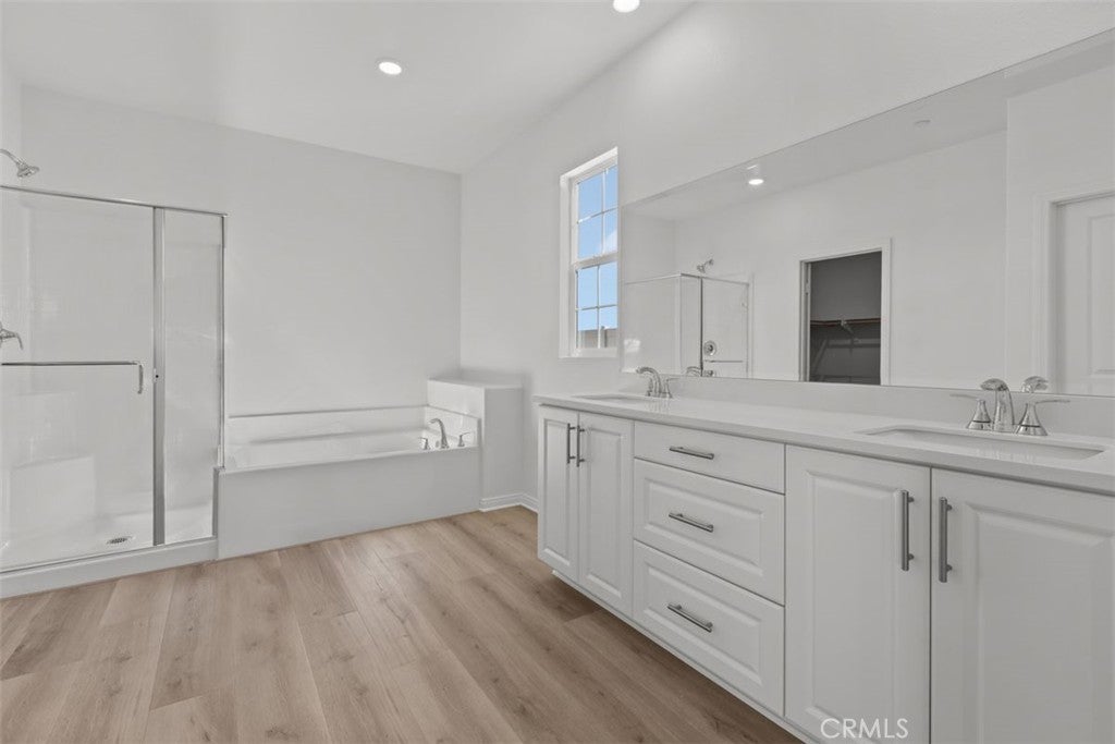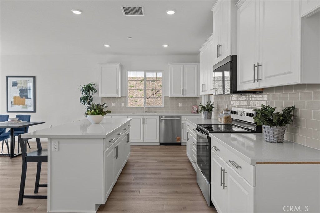 Palmetto is new community by KB Home in the Inland Empire. 104 home sites nestled into the hills of Moreno Valley. This a beautiful single story 4 bedroom 2 bath home. Huge open living space and kitchen with lots of upgrades including vinyl plank in most of the house and some carpet as well. Beautiful kitchen with Quartz countertops and a full backsplash, stainless steel appliances and more. spacious primary bedroom and bath with separate tub & shower and a large over 10,000+ sq. ft. lot to take advantage of. Nestled in the hills off of the Nason and Moreno Beach side of Moreno Valley where tons of new shopping and dining is you'll have convenient access to the shops as well as freeway access. Photo is a rendering of the model. Buyer can either lease or purchase the Solar.