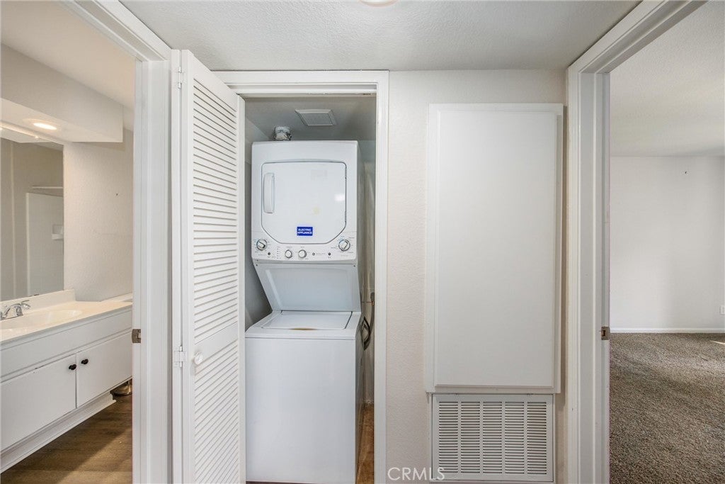 One bedroom, one bath, second story condo available in the conveniently located Sage Canyon community of Green River in Corona Hills. One of the best commuter locations to head into Orange County. Large bedroom with a walk-in closet and bath with shower-in-tub separated from the living room by a hallway. Kitchen open to large living and dining room with updated white cabinets, light-colored countertops, and stainless steel appliances. Private covered balcony overlooks gorgeously landscaped community. Laundry in unit. Two storage closets. Assigned covered parking space. HOA includes a pool, spa/hot tub, sport court, and gym. Short drive to 91 FWY on-ramp. Close to popular hiking trails and three public parks in addition to shopping and dining options a short drive away.