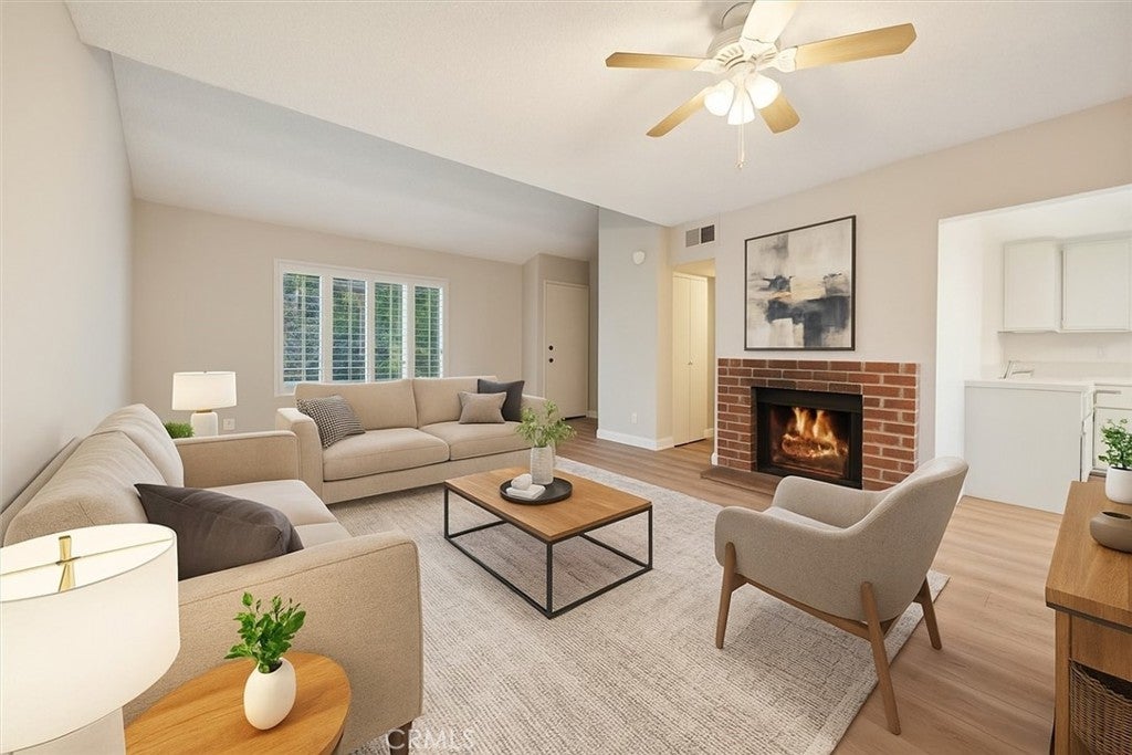 Welcome to this super s-p-a-c-i-o-u-s and charming two-story 2Br/2Bth condo. Nestled in a secure gated community close to the 210 Freeway, Yaamava Resort & Casino, shopping, schools, parks, and restaurants, and all within easy access to freeways, The condo is located in a quiet, private area within the community, bordered by lovely trees, landscaping, and privacy hedges. The condo is steps away from the sparkling pool, spa, and clubhouse. The large kitchen boasts new appliances and ample cabinet space. Step onto new flooring and new carpet throughout the condo in warm earth tones Freshly painted, crisp, bright, and ready for your personal touch. Enjoy the enclosed, private patio with dual sliding glass doors. The living room is complemented by vaulted, beam ceilings and an inviting, brick fireplace. The generous master ensuite features a roomy, walk-in closet and adjoining bath. There is a nice-sized secondary bedroom, a convenient hall bathroom, and storage space galore throughout! There are washer and dryer hookups, and a two-car garage with an automatic door. The HOA dues include water and trash. Don't miss this opportunity! See it today! This warm and inviting condo is move-in ready. Don’t miss this opportunity! See it today!
