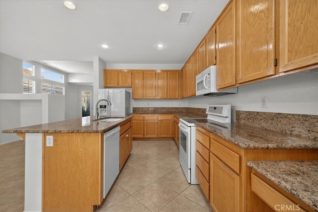Located in the Oasis 55+ guard gated resort style community, this residence blends comfort, elegance, and lifestyle. Boasting 2,085 sq ft of living space on a 5,663 sq ft lot, this home offers 2 bedrooms, 2.5 baths, and an attached 2-car garage. Step inside to discover a spacious, light-filled layout with vaulted ceilings and an open concept living/dining area. A cozy fireplace adds warmth and charm to the great room. The kitchen is ideal for entertaining, with ample cabinetry and counter space (with the potential for modern upgrades). The primary suite features a suite bath and generous closet space, while the second bedroom and bath provide comfortable accommodation for guests. Third room was used as an office and can be used as a bedroom. Outside, the yard invites you to relax beneath a covered patio, with room for outdoor living and enjoying the sunshine in privacy. The location in the Oasis community affords access to numerous amenities: clubhouse, pool and spa. It is conveniently located near shopping, dining, medical services, and freeway access. Don’t miss this opportunity in the heart of Menifee’s sought-after 55+ community.
