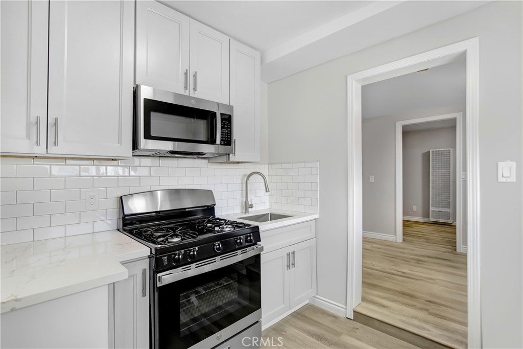 Welcome home to this charming single-family property with a versatile secondary unit—ideal for multigenerational living, guests, or extra income potential! The main home (1 bed/1 bath, approx. 500 sqft, ) shines with new paint, updated flooring, quartz counters, dual pane windows, and modern finishes. The separate unit (1 bed/1 bath, approx. 400 sq ft,) offers a beautifully remodeled kitchen with quartz countertops, tile backsplash, and stainless steel appliances plus an updated bath and mini-split AC. Enjoy a large corner lot with gated rear access, carport, driveway parking, shared laundry hookups, private patio, and fenced yard. Endless possibilities for home-based business, storage, or future ADU expansion (buyer to verify).