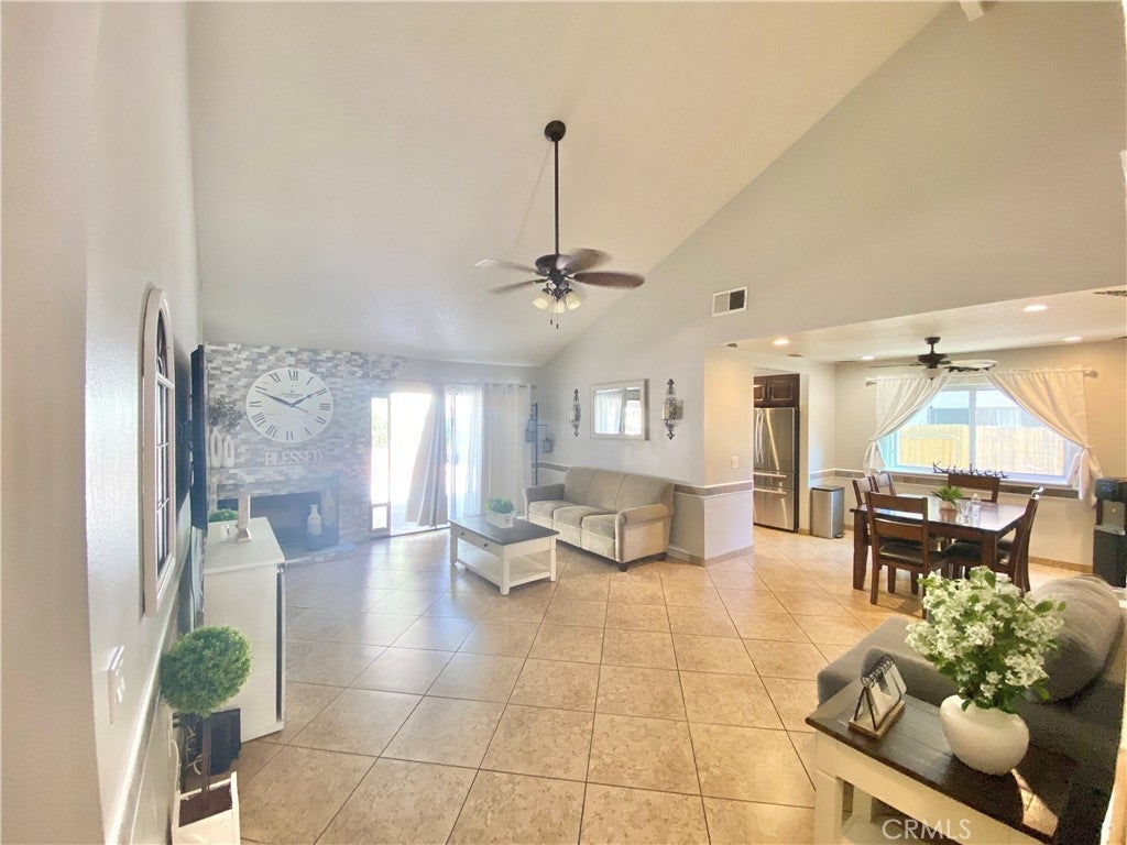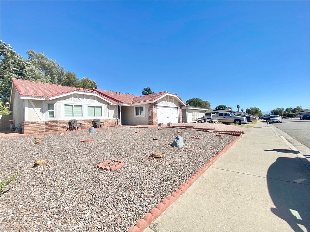 Welcome to this beautifully updated 3-bedroom, 2-bath home in the heart of Lake Elsinore, offering comfort, style, and low-maintenance living both inside and out. This home features a versatile bonus room in the converted garage — perfect for a home office, gym, or guest space. Step inside to fresh interior and exterior paint, along with new tile flooring in the bedrooms and upgraded tile in the master suite. The master bedroom also includes a patio slider for direct access to the backyard. Enjoy outdoor living with a covered patio and large cement slab, ideal for entertaining. The backyard is thoughtfully designed with decorative pavers, rock landscaping, and fruit trees lining the back wall, creating a relaxing, low-maintenance retreat. The front yard features custom rock and brickwork, enhancing curb appeal while remaining drought-friendly. Don’t miss this move-in-ready home that blends functionality, upgrades, and outdoor charm — all in a great location!