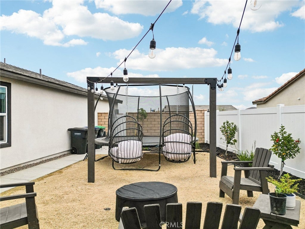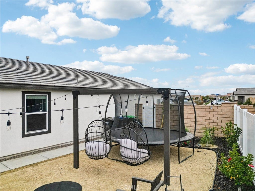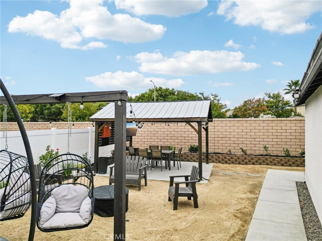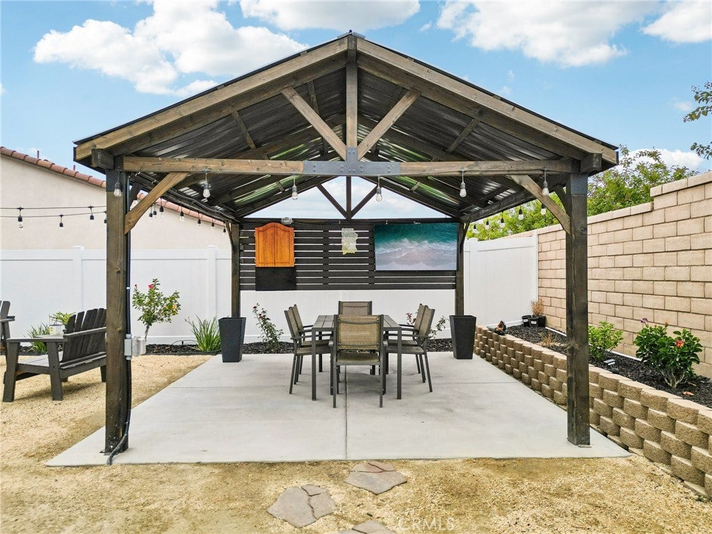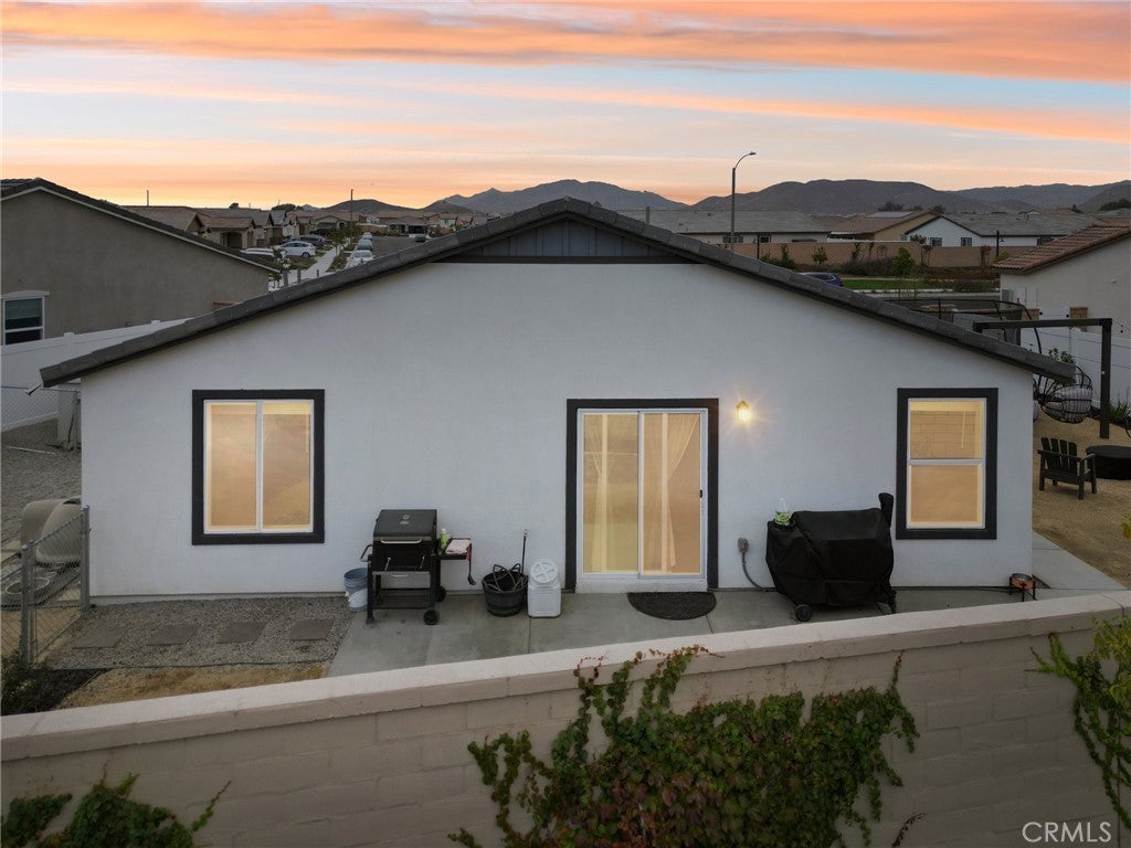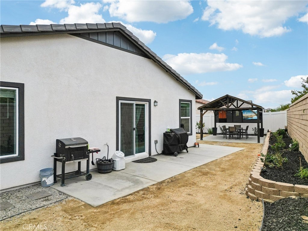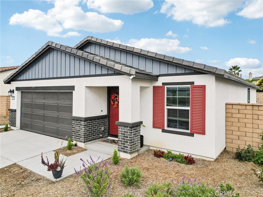 Welcome to your new home in Hemet! Built in 2024, this beautiful single-story residence offers 3 spacious bedrooms and 2 full bathrooms. As you arrive, you’ll be greeted by a charming bright red front door and matching shutters that add a pop of curb appeal. Step inside to discover an open floor plan filled with natural light, featuring a large living area that flows seamlessly into the modern kitchen — perfect for entertaining family and friends. Each bedroom is generously sized, providing comfort and flexibility for the whole family. The backyard is ready for gatherings, complete with concrete areas, low-maintenance mulch landscaping, and a lovely gazebo — ideal for relaxing or hosting outdoor get-togethers. Conveniently located near local shopping, schools, and parks, this move-in ready home combines modern style, functionality, and value. Don’t miss your chance to make it yours!
