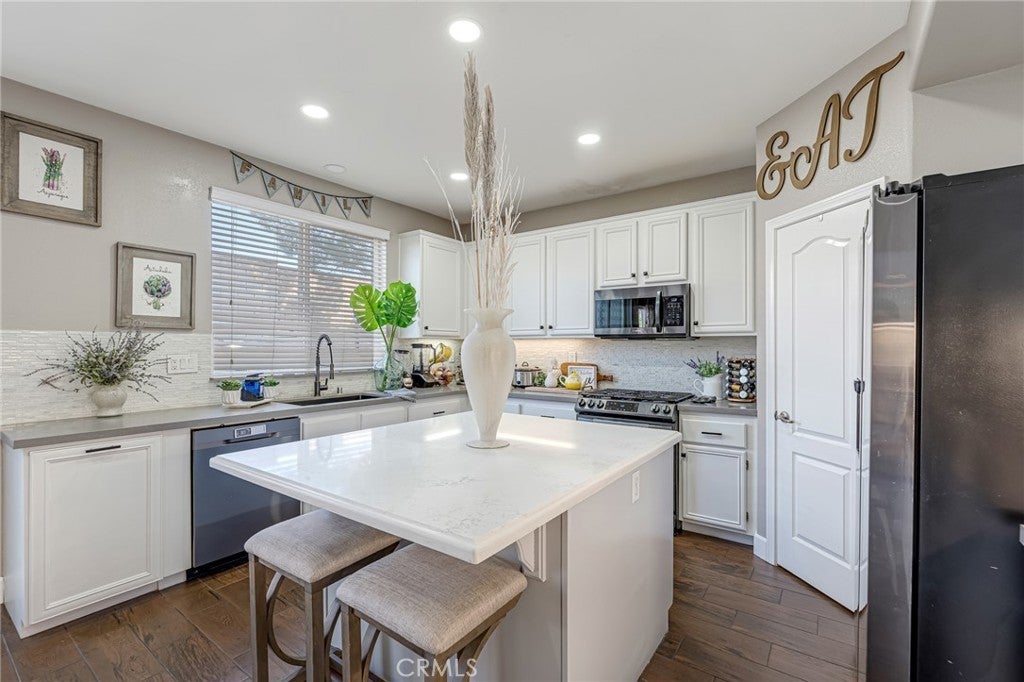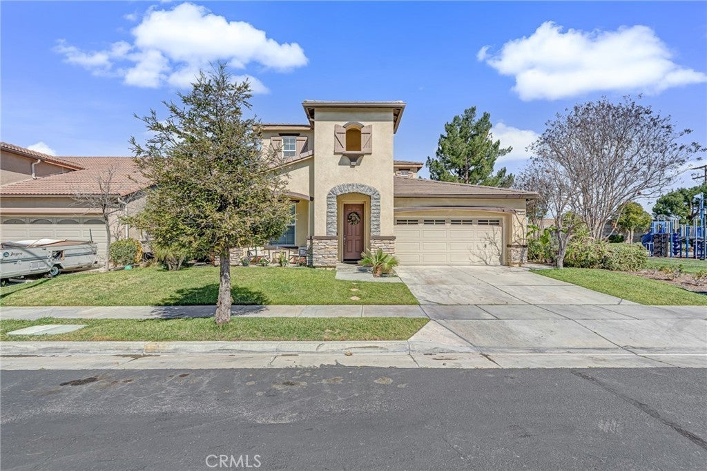 Welcome to the highly sought-after gated community of Willowalk! This stunning two-story home features 5 bedrooms and 3 bathrooms, offering comfort, functionality, and modern upgrades throughout. The first floor includes a bedroom and a full bathroom, along with recently upgraded flooring. The living room boasts a cozy fireplace and a built-in entertainment system, perfect for gatherings or quiet nights in. Home comes equipped with a car charging system for electric vehicles. Enjoy the elegant quartz countertops featured in all three bathrooms, the kitchen, kitchen island, hallways, laundry room, and even the office—complete with built-ins and a sleek quartz workspace. Step outside to an entertainer’s dream backyard, featuring a built-in BBQ with grill, flat top, and gas burner. The outdoor space also includes a concrete planter with quartz countertop, stylish concrete slabs, and low-maintenance synthetic grass. The Willowalk community offers an impressive array of amenities, including a pool, spa, playgrounds, sports courts, clubhouse, picnic areas, and a gated entrance. Conveniently located within walking distance to schools, parks, shopping centers, and restaurants, with easy access to Highway 74, this home truly has it all. Don’t miss the opportunity to make it yours!