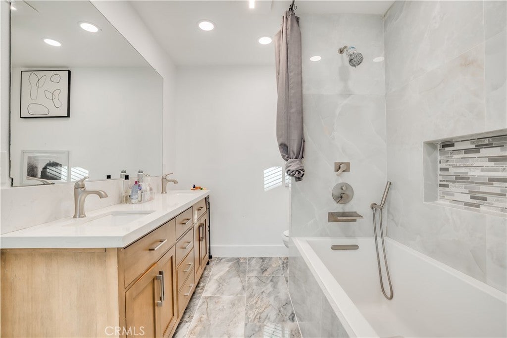 Welcome to 1450 Via Vallarta, a beautifully remodeled home perfectly situated on the prestigious Canyon Crest Golf Course in Riverside. This single story residence showcases modern design, high end finishes, and a spacious open concept layout that captures natural light and stunning golf course views. Thoughtfully customized from its original four bedroom design, the home now features a spacious three bedroom layout with a flexible guest suite, easily convertible back to a full four bedroom floor plan. The vaulted ceilings with exposed wood beams, wide plank herringbone vinyl flooring, and open flow between living, dining, and kitchen areas create a sense of modern elegance and warmth. The gourmet kitchen impresses with quartz countertops, a full height marble backsplash, stainless steel professional grade appliances, and a large island ideal for entertaining. The adjoining family room features built ins, an electric fireplace, and sliding doors leading to the backyard oasis. The luxurious primary suite includes a walk in closet and a spa inspired bath with dual vanities, soaking tub, and frameless glass shower. Each additional room offers comfort and versatility, perfect for guests, work, or multigenerational living. Enjoy the private pool and spa overlooking the golf course, surrounded by low maintenance landscaping and multiple outdoor areas designed for relaxation and entertaining. Every detail in this home blends sophistication with functionality, offering the perfect balance of indoor outdoor California living for all lifestyles. Key Features Located directly on Canyon Crest Golf Course Remodeled single-story with modern finishes 3 bedrooms + convertible guest suite (formerly 4 bedrooms) Open-concept floor plan with vaulted ceilings & beams Designer kitchen with quartz counters & marble backsplash Professional stainless steel range & dual ovens Primary suite with soaking tub & walk in shower Two separate living areas, one with built in fireplace & wet bar Sparkling pool & spa with golf course and mountain views Expansive patio & artificial turf yard for low maintenance living Close to Canyon Crest Country Club, UCR, and shopping
